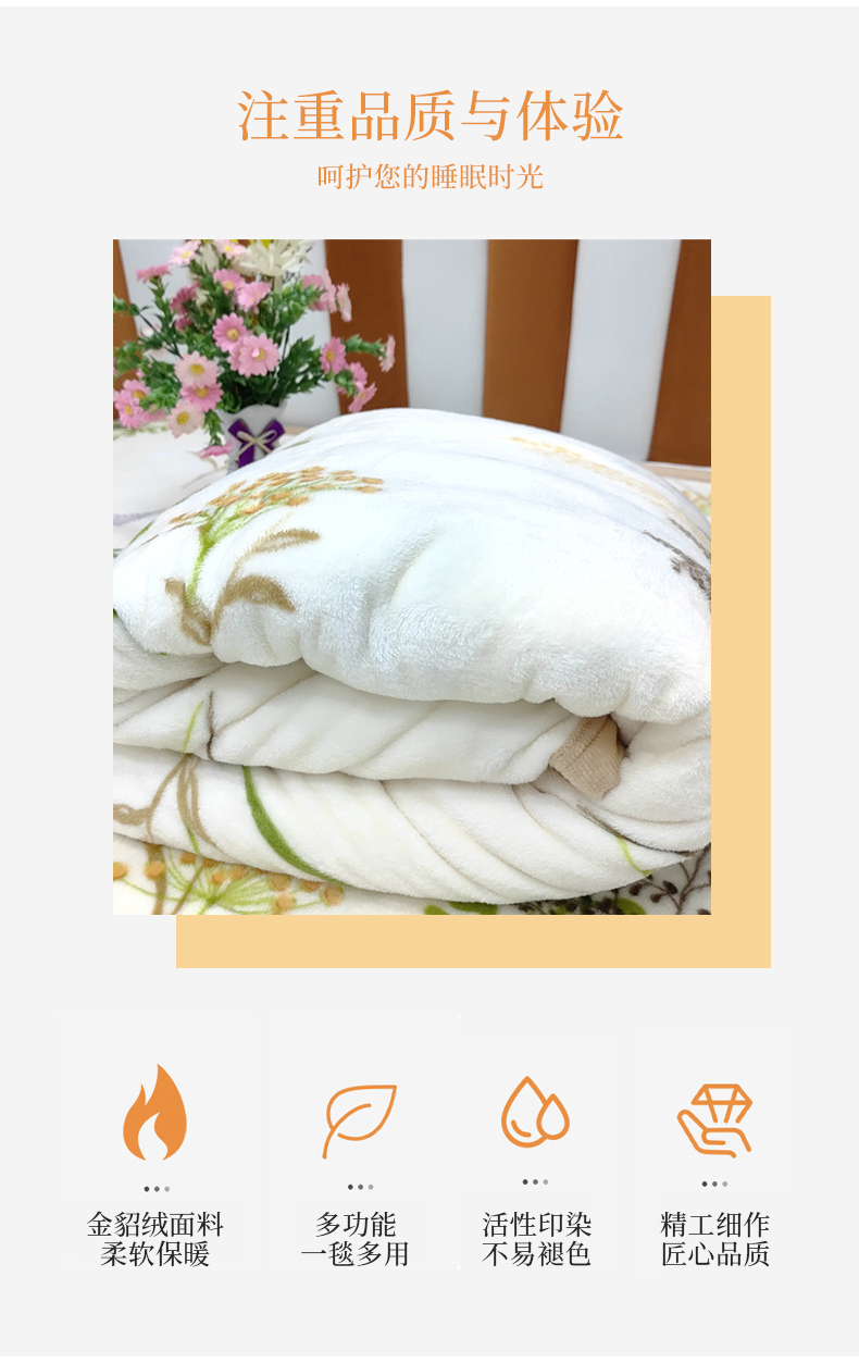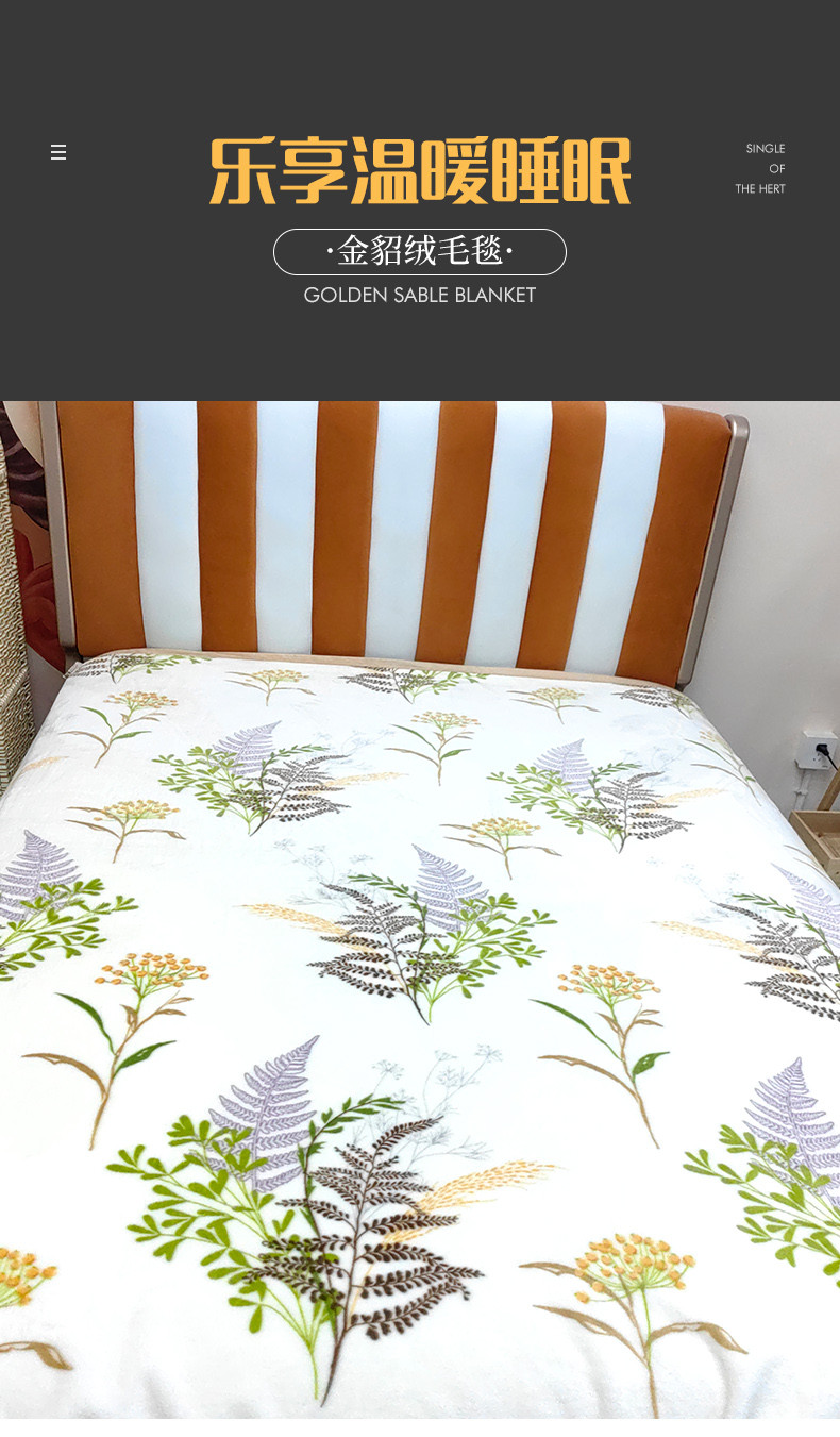 商品名称:爱她美2023新款300g金貂绒系列加厚包边法莱绒盖毯毛毯子 欣欣向荣