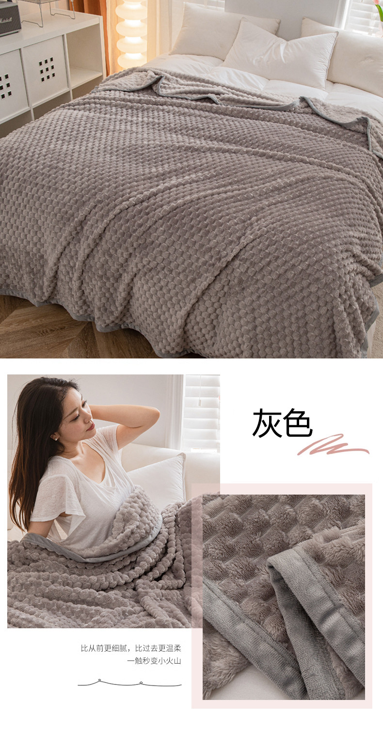 (总)卡琪曼 2023新款玫瑰绒 毯子毛毯盖毯,蓝色,绿色,奶白,浅粉色,驼色,紫色,灰色