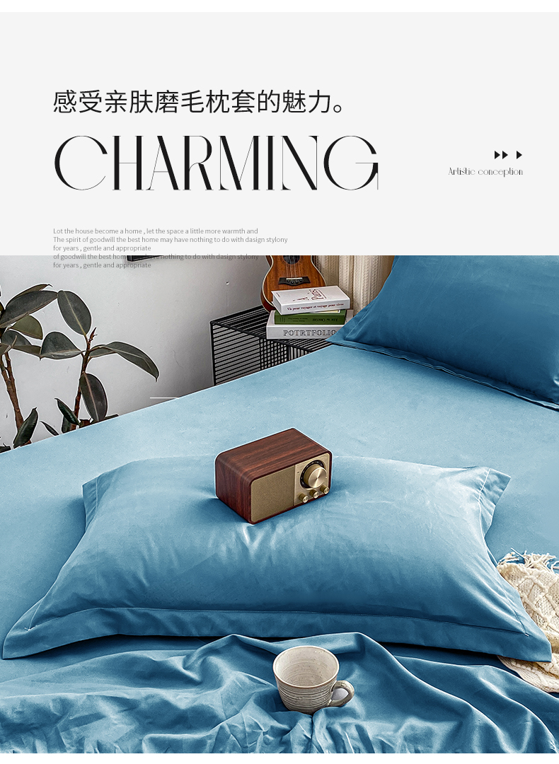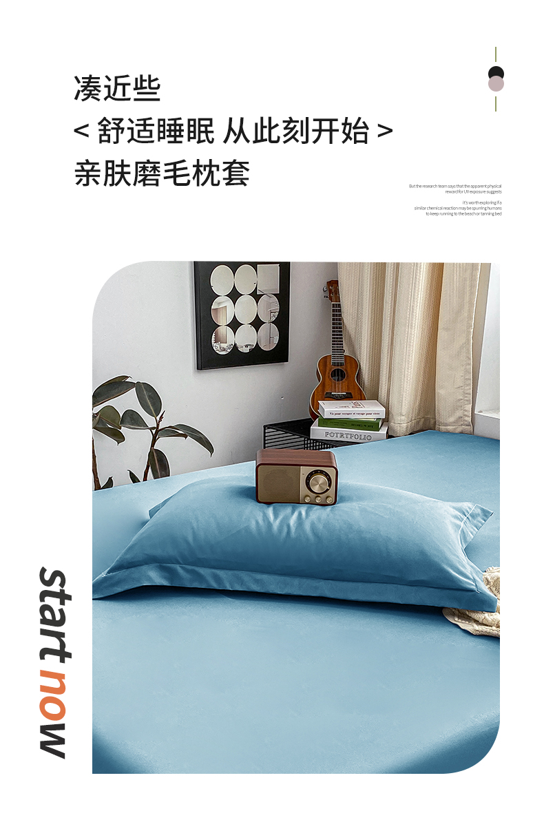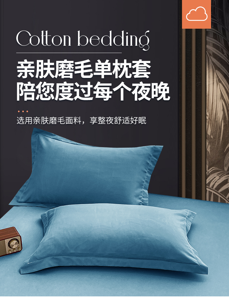 商品名称:恬澳家纺 2024新款亲肤磨毛单枕套系列-实拍风 深海蓝