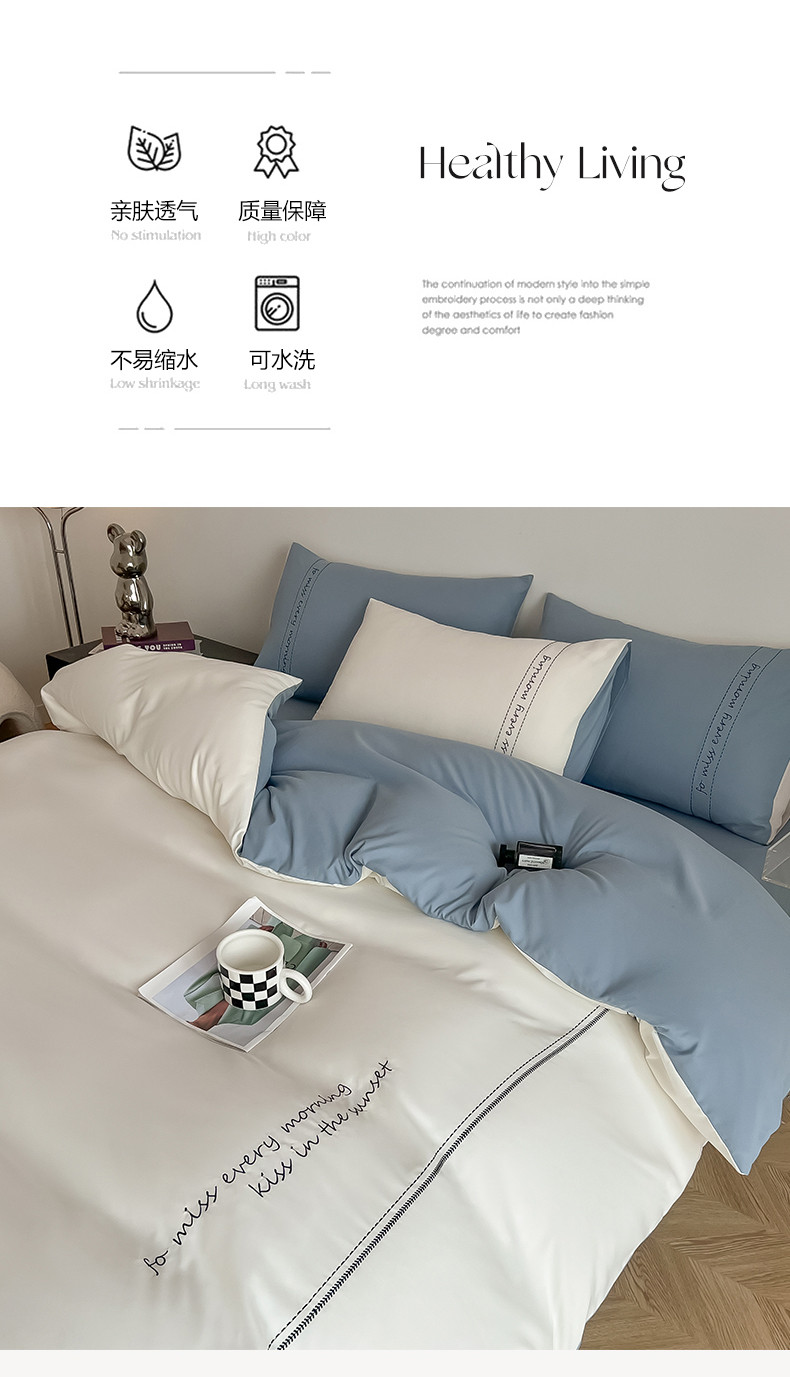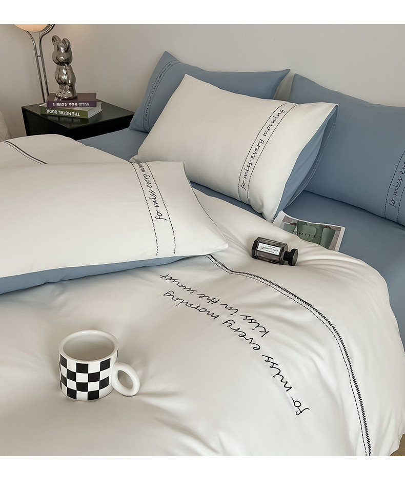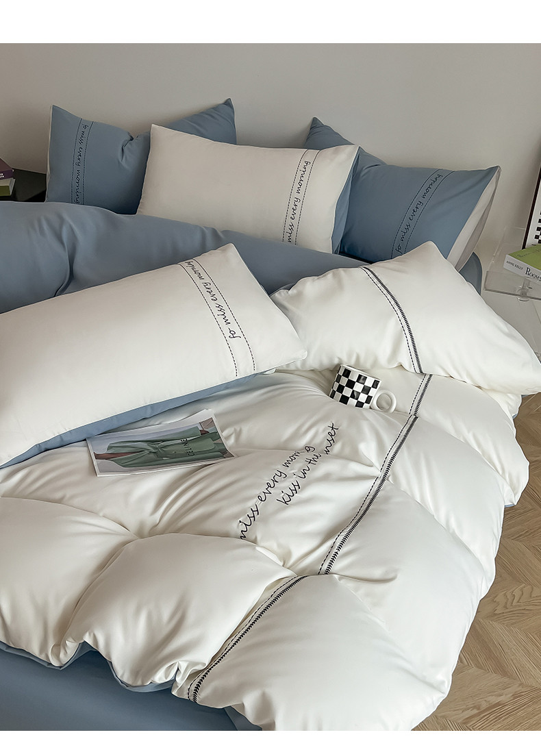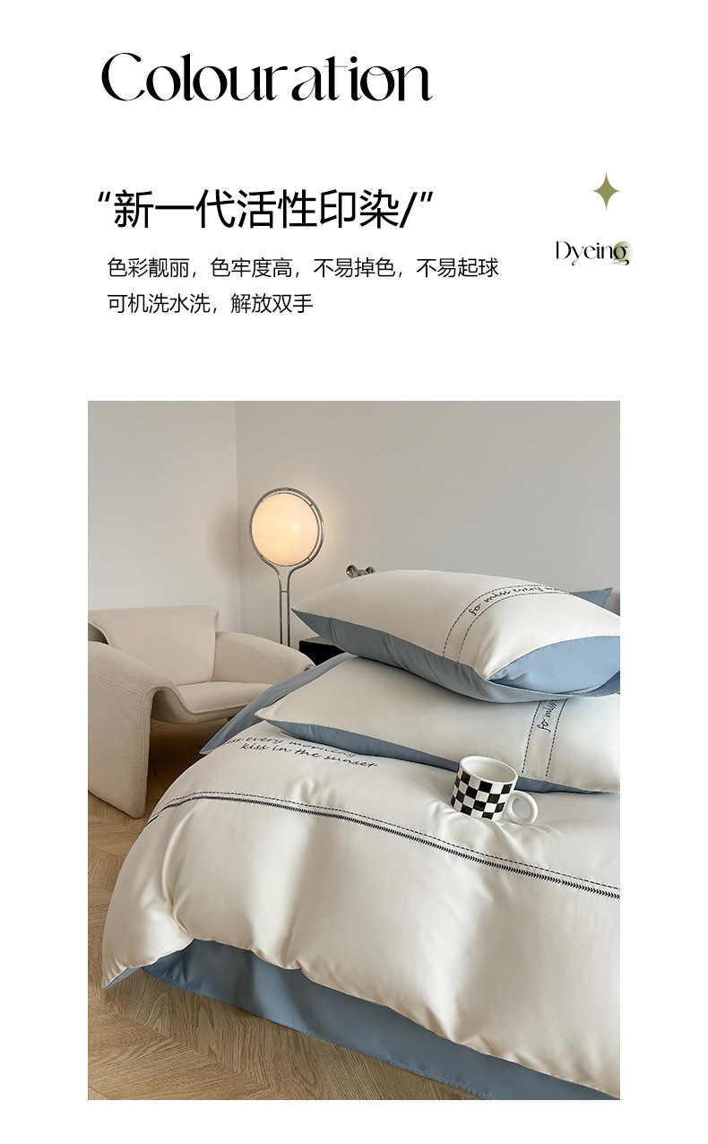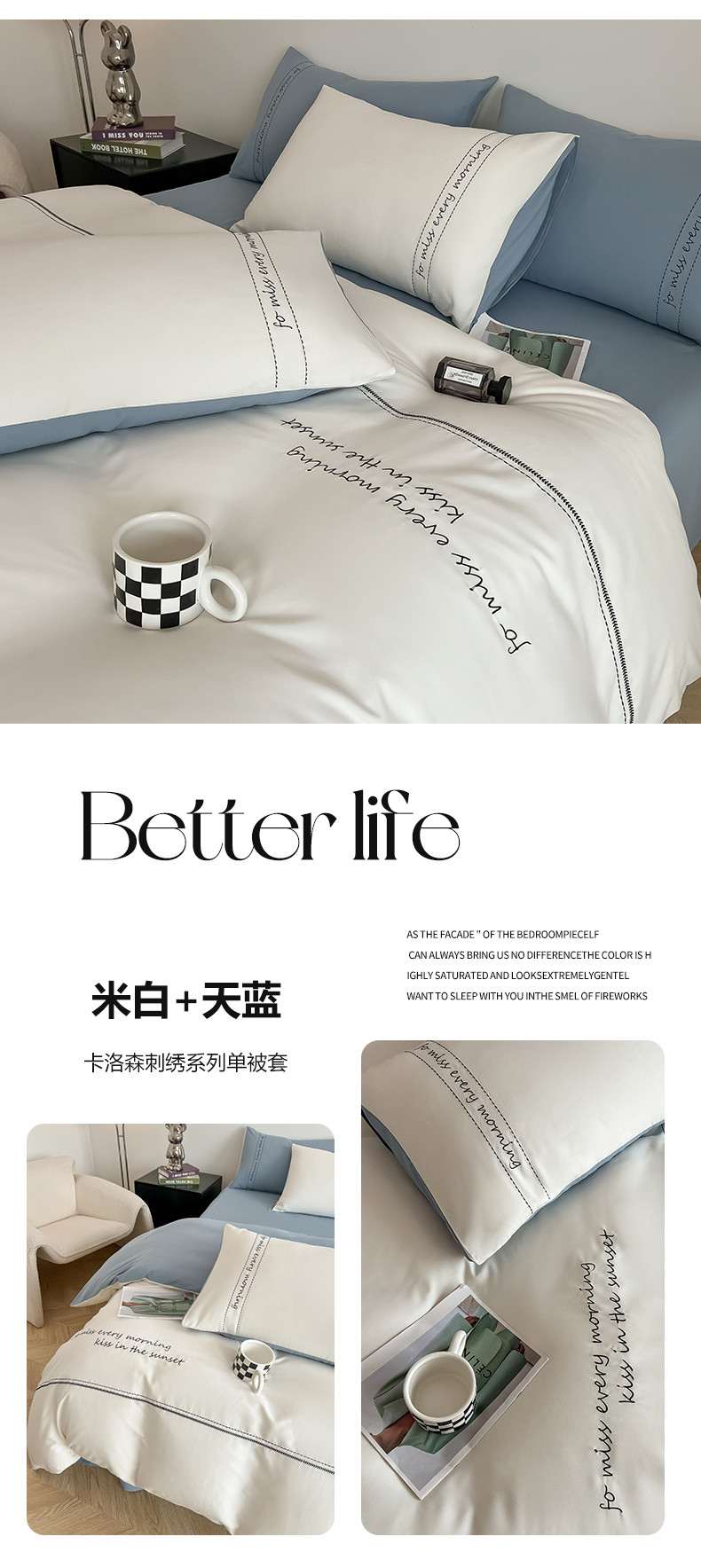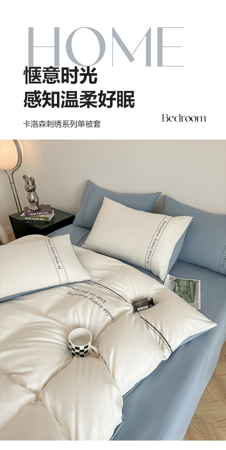 尤米 2023新款磨毛刺绣纯色双拼卡洛森系列--单被套 米白+天蓝