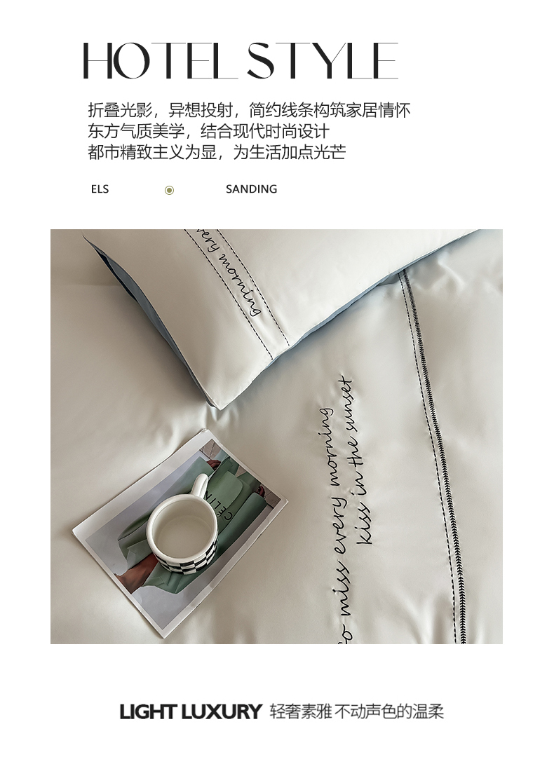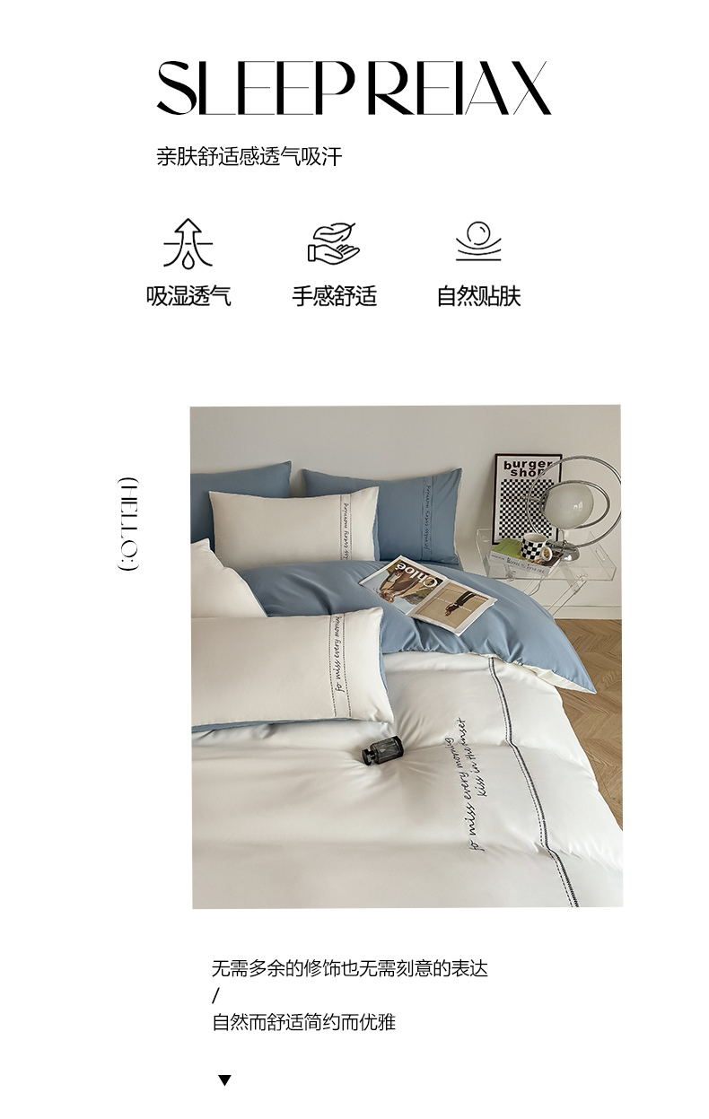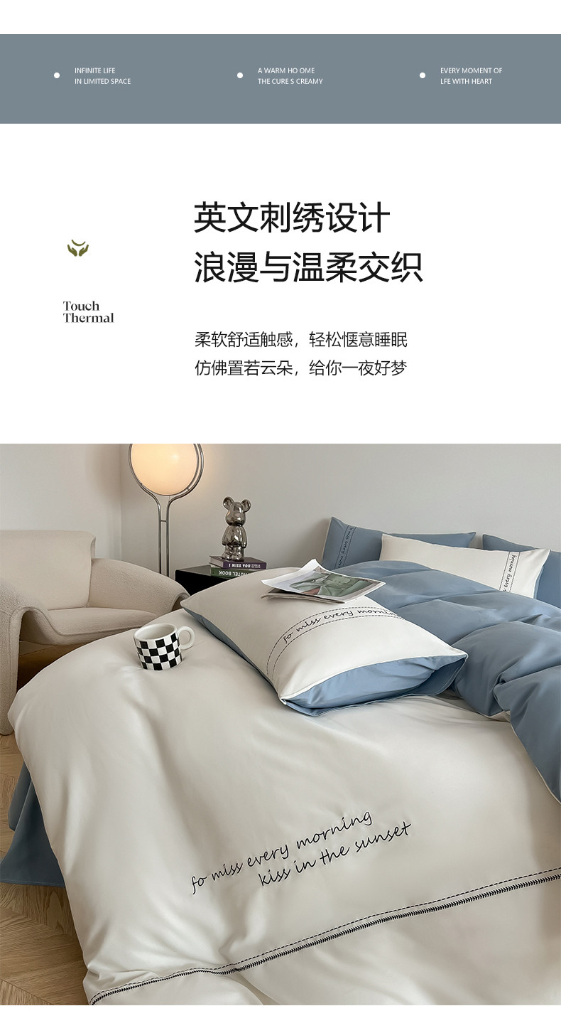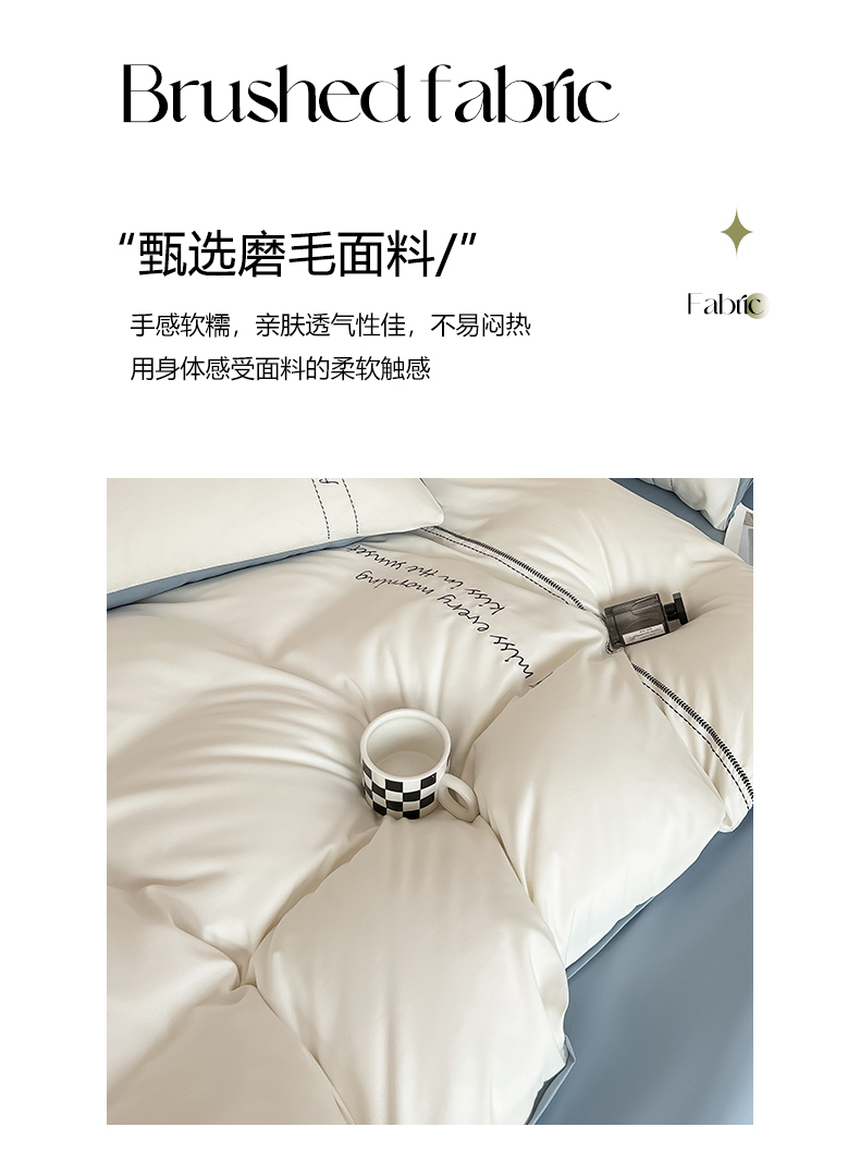 • 91家纺网 家纺一手货源 找家纺 尤米 2023新款磨毛刺绣纯色双拼卡洛森系列--单被套 米白+天蓝