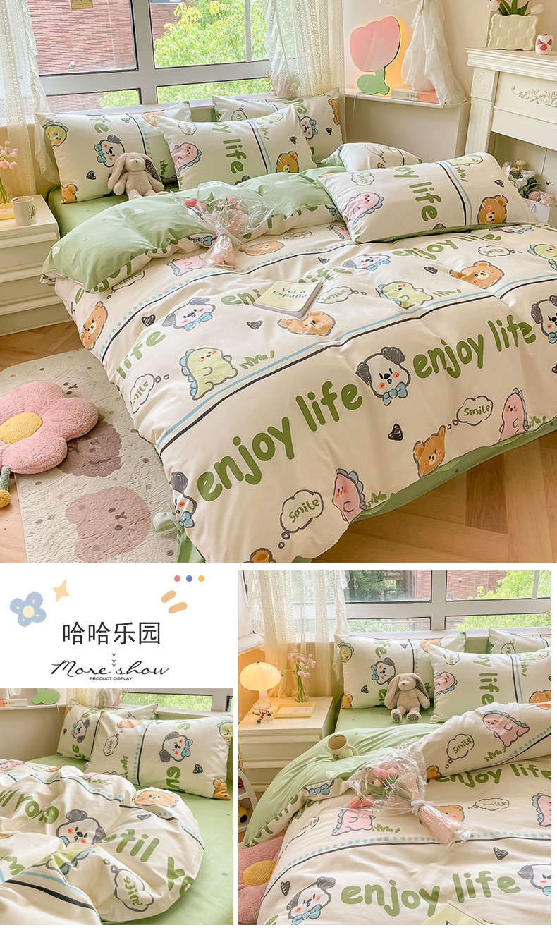当前位置: 91家纺网 > 商品网购 > 床品套件 > 四件套 > 全棉普通四件套 > 麦伦家居 2023新款全棉斜纹卡通小清新系列四件套-第四波 哈哈乐园