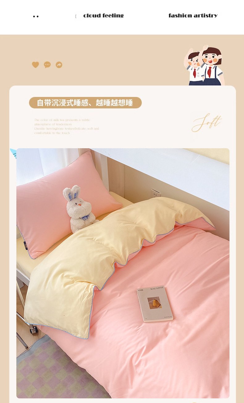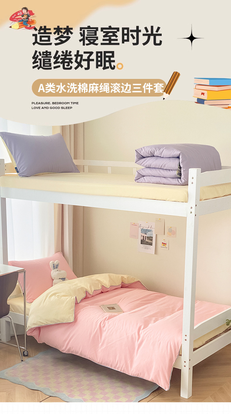 当前位置: 91家纺网 > 商品网购 > 床品套件 > 四件套 > 水洗棉四件套 > 眠帛2023水洗棉麻绳滚边芝士系列学生三件套六简套A类 芝士奶油粉奶黄