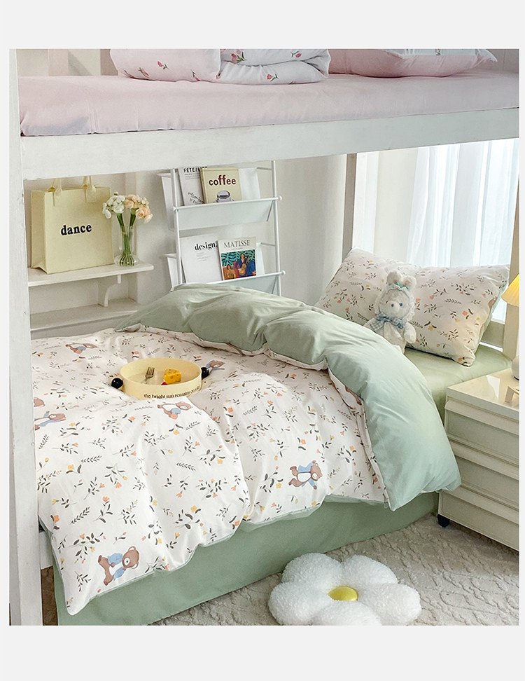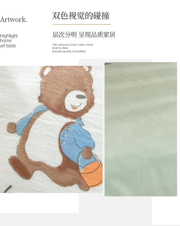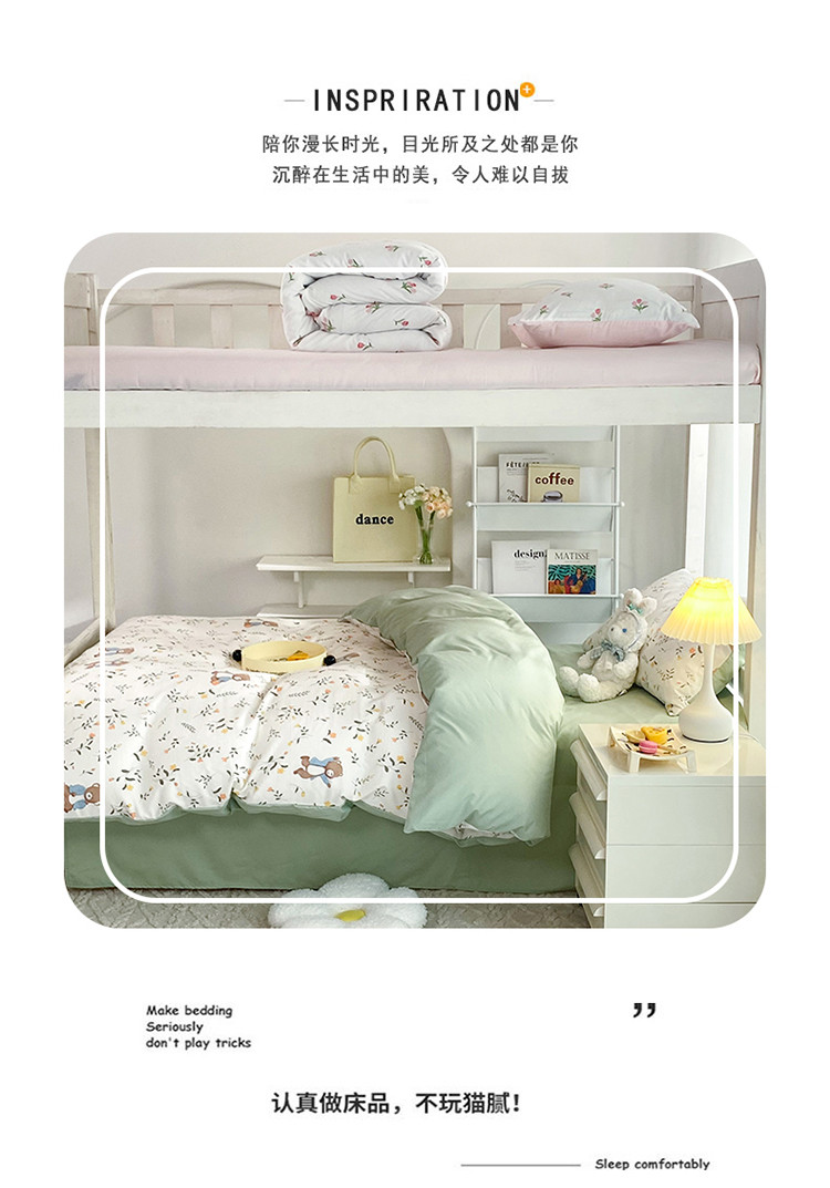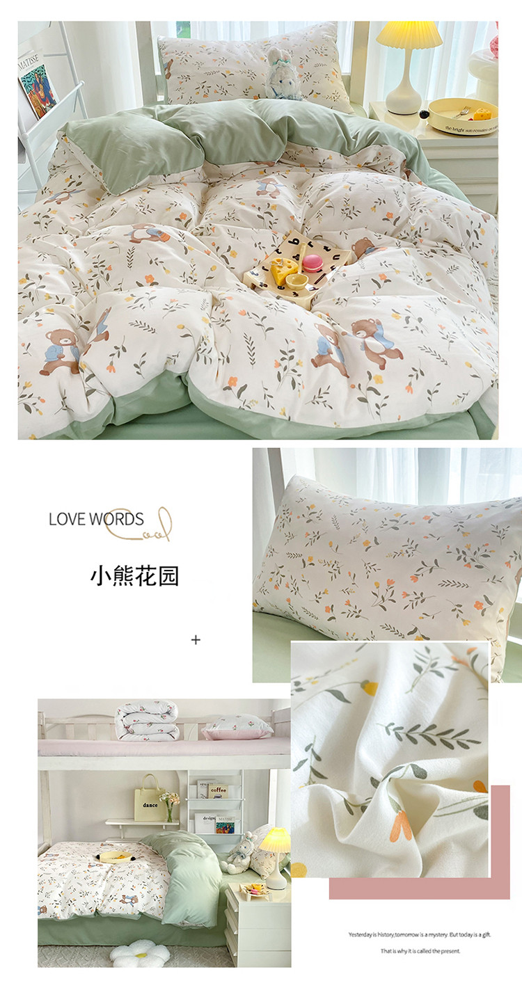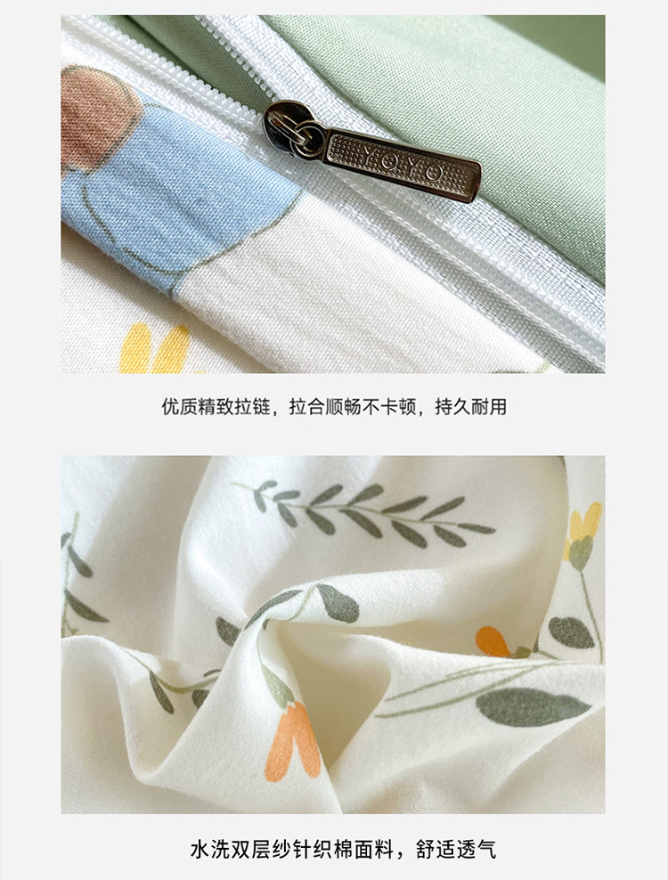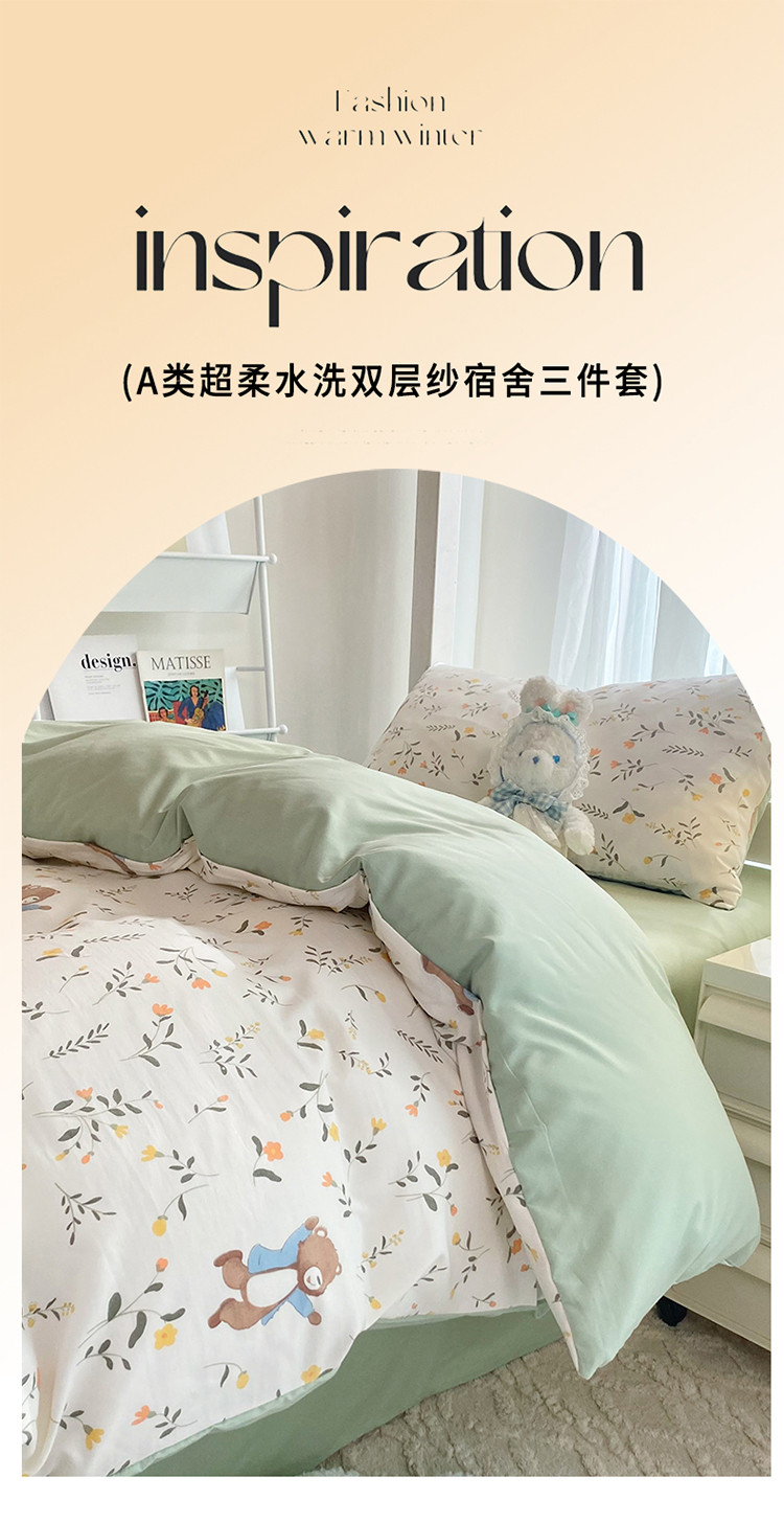 商品名称:妖妖家纺 2023新款超柔水洗双层纱三件套宿舍床 小熊花园