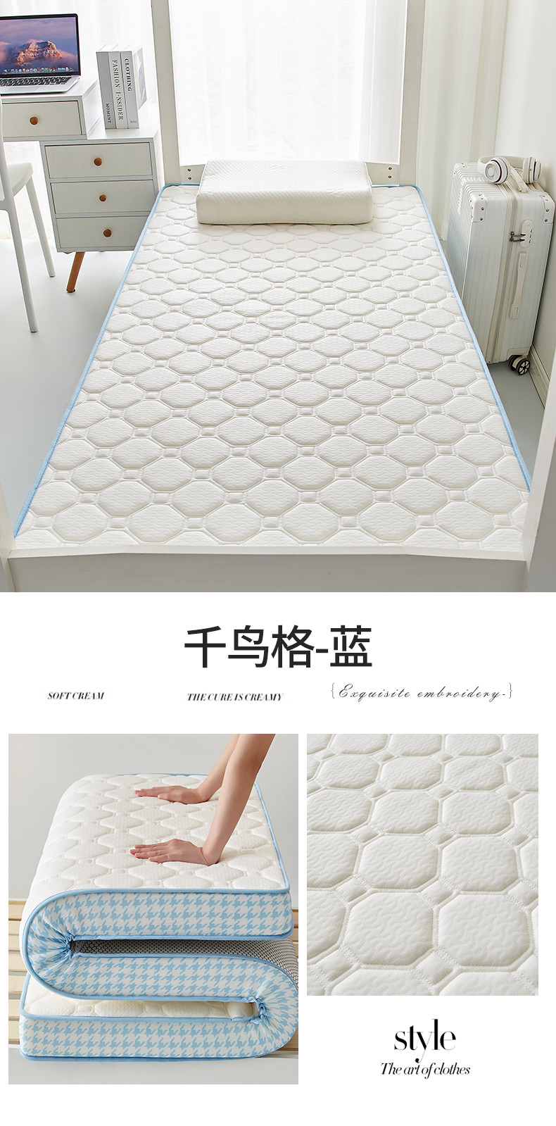 商品名称:(总)布卢姆2025新款A类针织乳胶记忆海绵立体学生床垫子-千鸟格系列