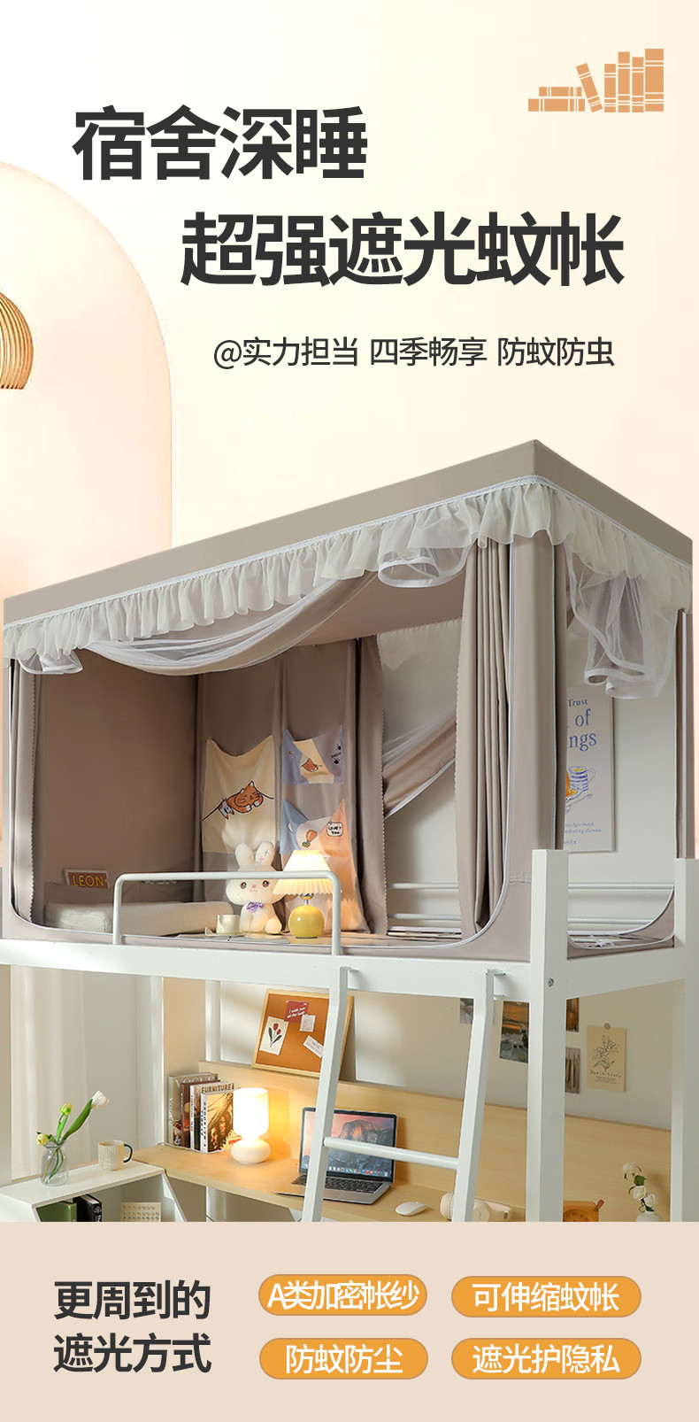 • 91家纺网 家纺一手货源 找家纺 夏彩 88575加强遮光涂层窗帘学生上下铺拉链蚊帐 88557-摩卡色