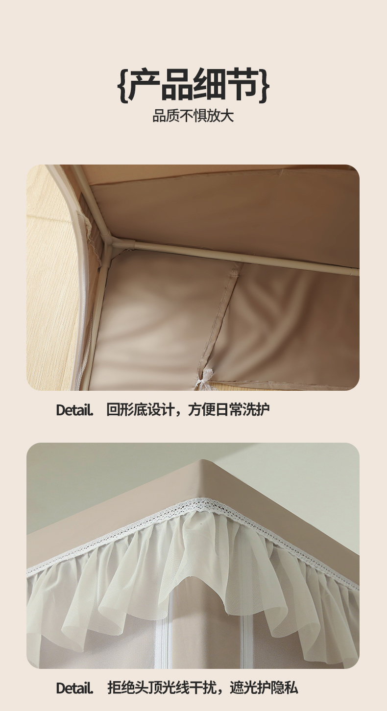 (总)夏彩 2025新款五面保暖坐床拉链四季款蚊帐-88631,绿雅灰,藕玉色,香槟色,保暖顶-香槟色,保暖顶-藕玉色,保暖顶-绿雅灰