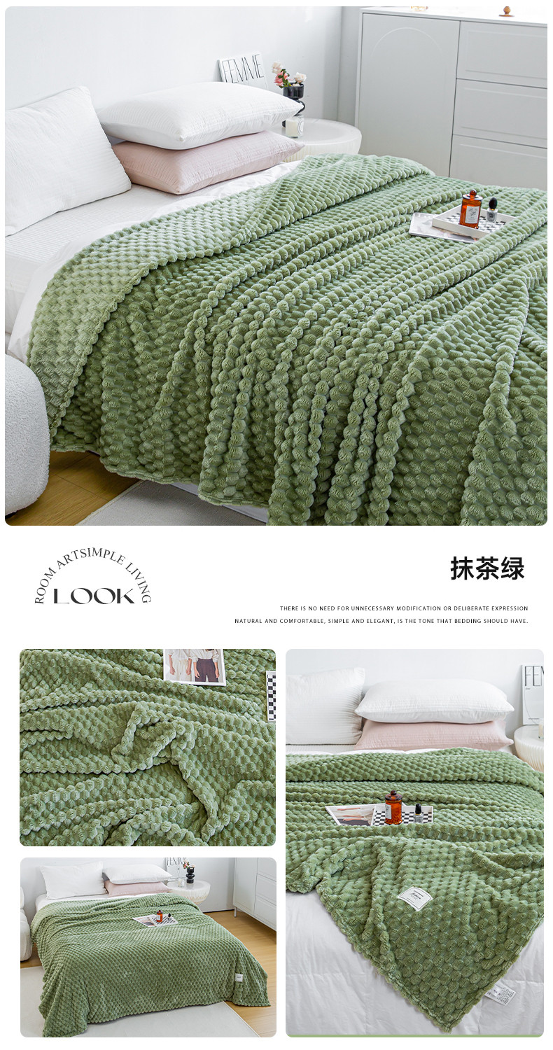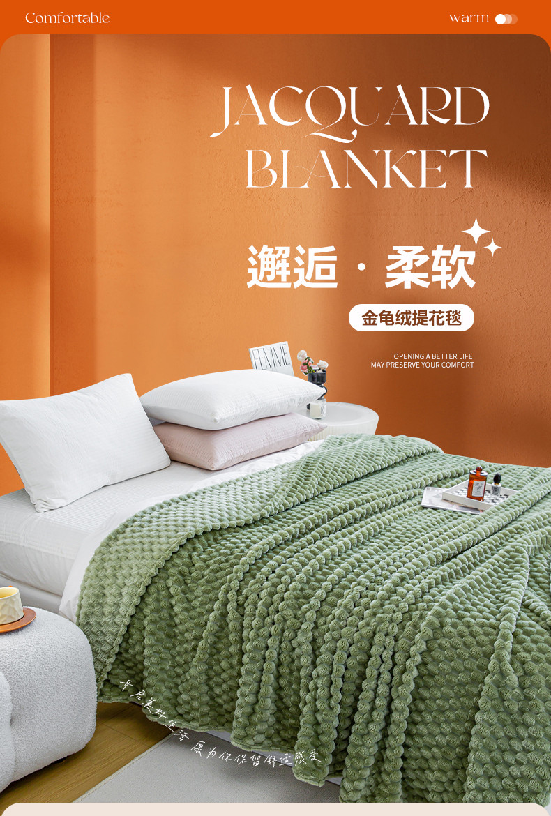 羋多 2023年新款菠萝格提花毯子法莱绒云貂绒贴布毛毯 金龟绒-抹茶绿