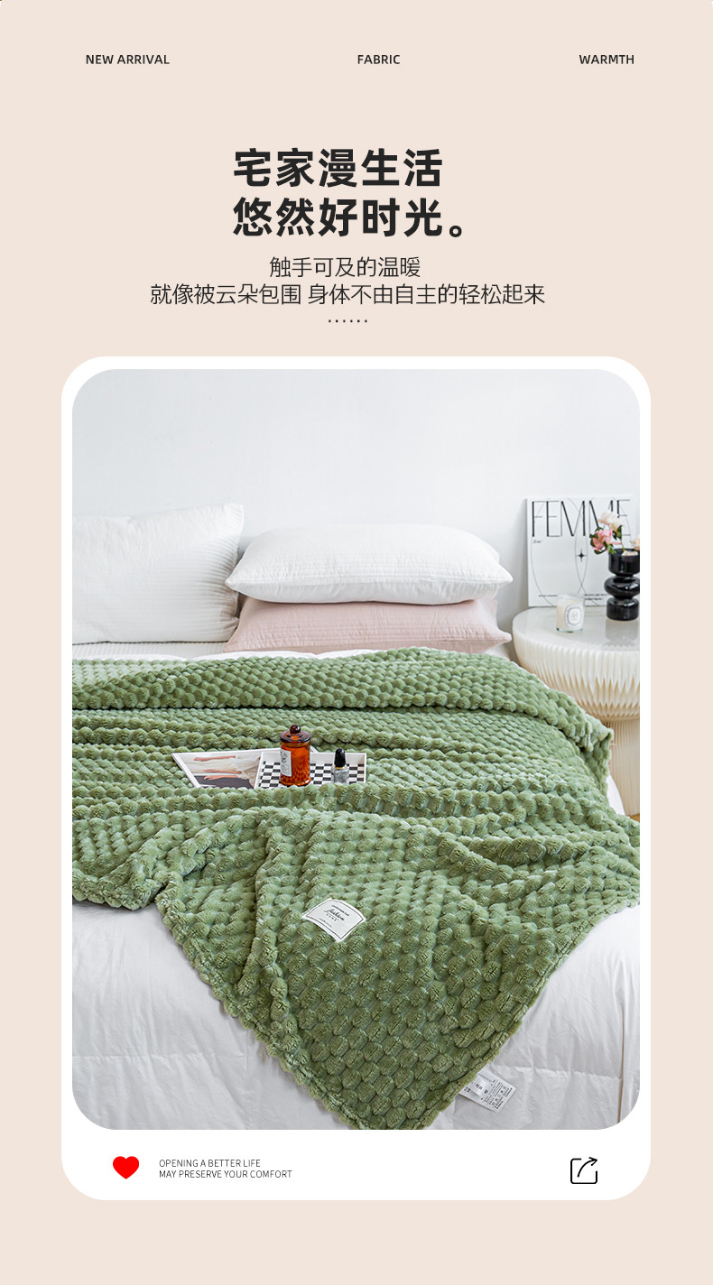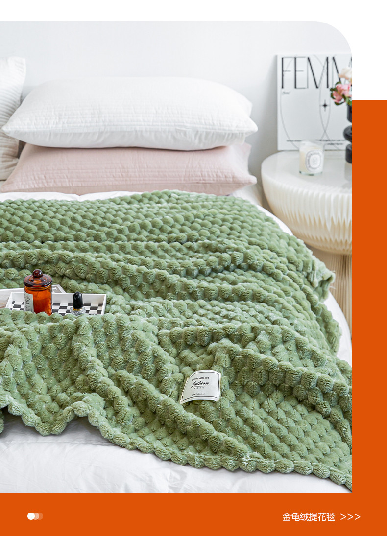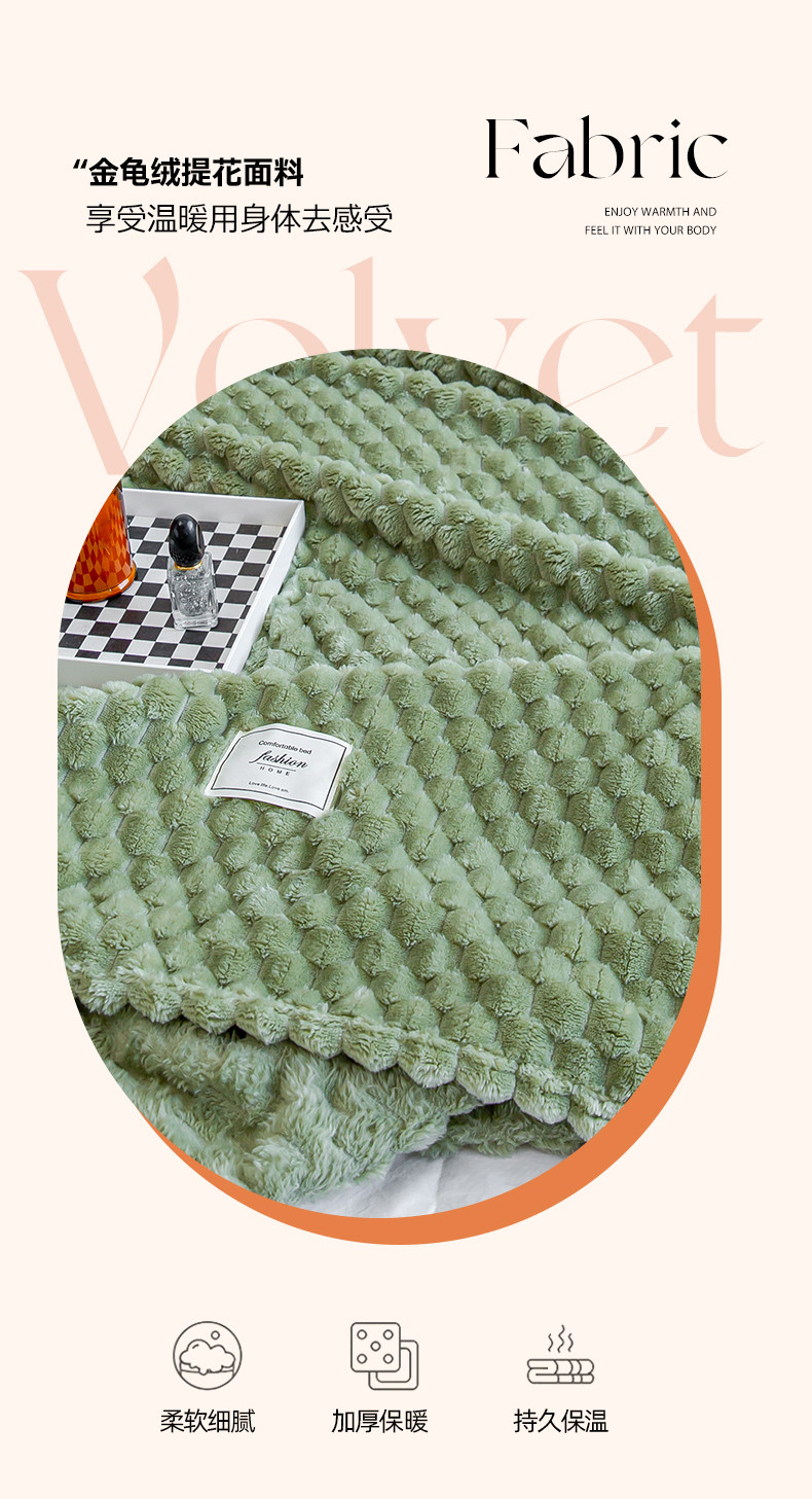 商品名称:羋多 2023年新款菠萝格提花毯子法莱绒云貂绒贴布毛毯 金龟绒-抹茶绿