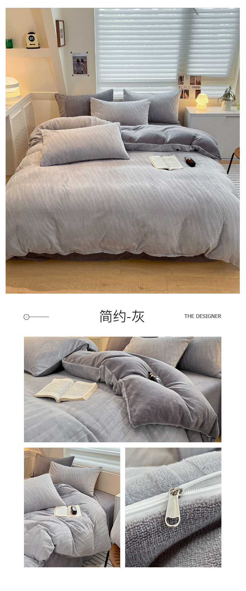 当前位置: 91家纺网 > 商品网购 > 床品套件 > 四件套 > 牛奶绒四件套 > 丝羽坊 2023新款高克重3D立体雕花提花牛奶绒四件套单被套 简约-灰