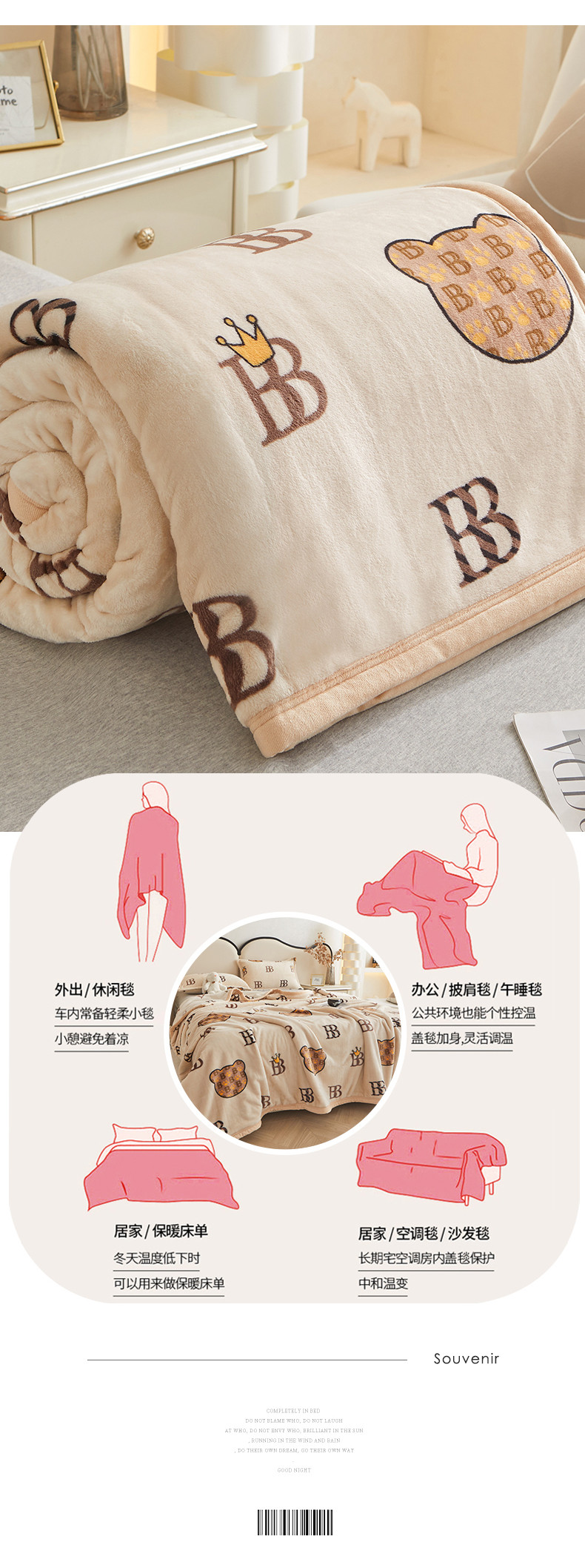 当前位置: 91家纺网 > 商品网购 > 毛毯休闲毯绒毯 > 毛毯 > 雅萱 2024新款牛奶绒盖毯子毛毯午睡毯保暖加厚 宝莉熊
