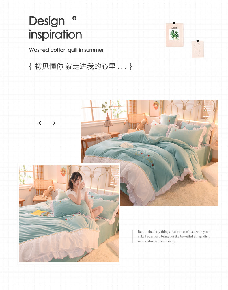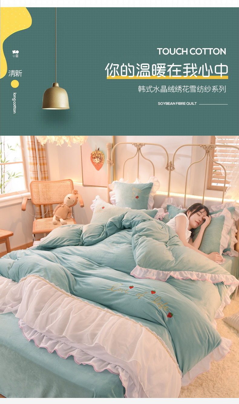 商品名称:绒世界 2024新款公主风倾城牛奶绒四件套 倾城-慕蓝