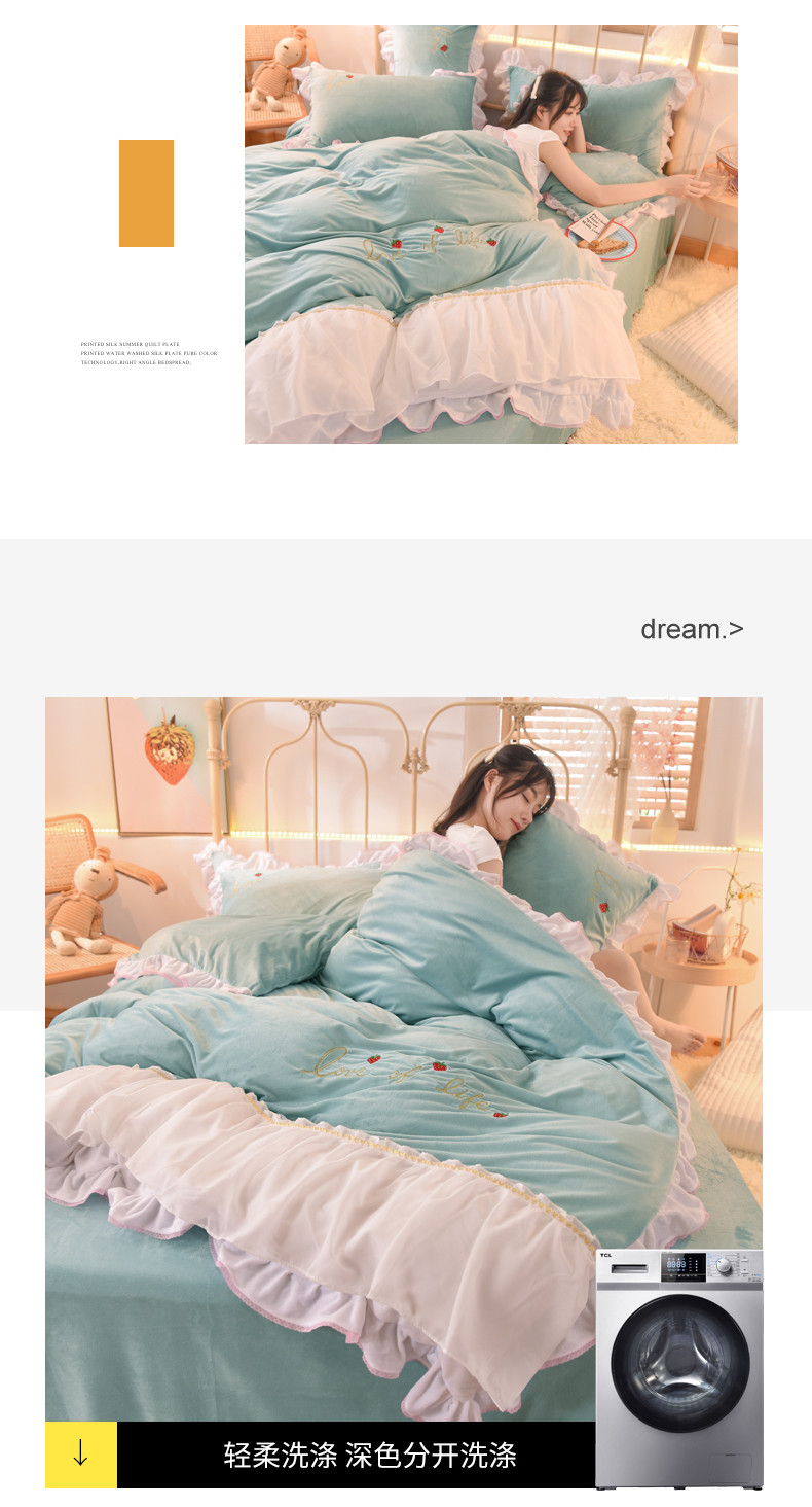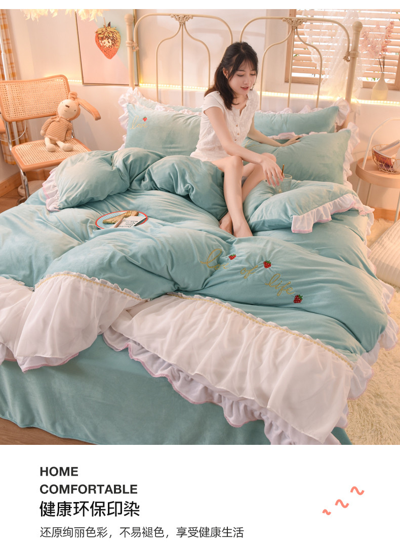(总)绒世界 2025新款加厚牛奶绒刺绣床裙款四件套,草莓-奶白粉,草莓-奶白,草莓-湖水蓝,草莓-落樱粉,草莓-薰衣紫