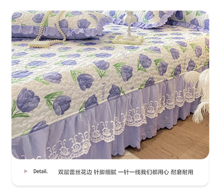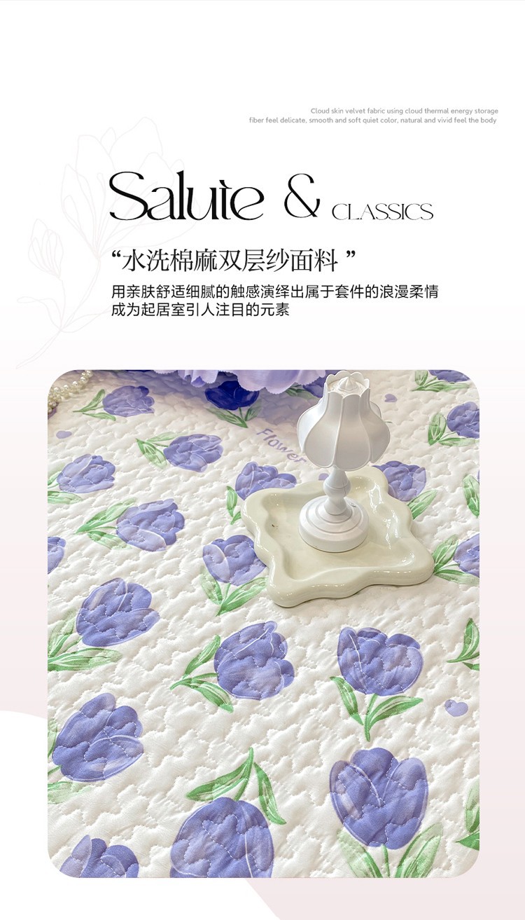 漫布云A类水洗棉麻双层纱小竺棉纯棉床盖三件套全棉夹棉防滑垫绗缝床盖