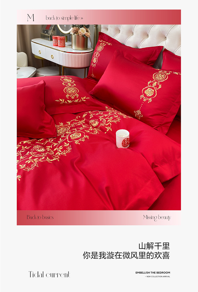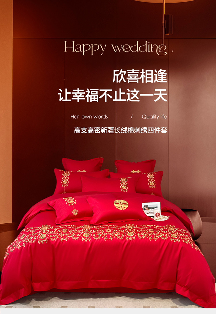 当前位置: 91家纺网 > 商品网购 > 床品套件 > 四件套 > 全棉普通四件套 > 欧乐蒂 2025新款全棉婚庆四件套 喜事连连