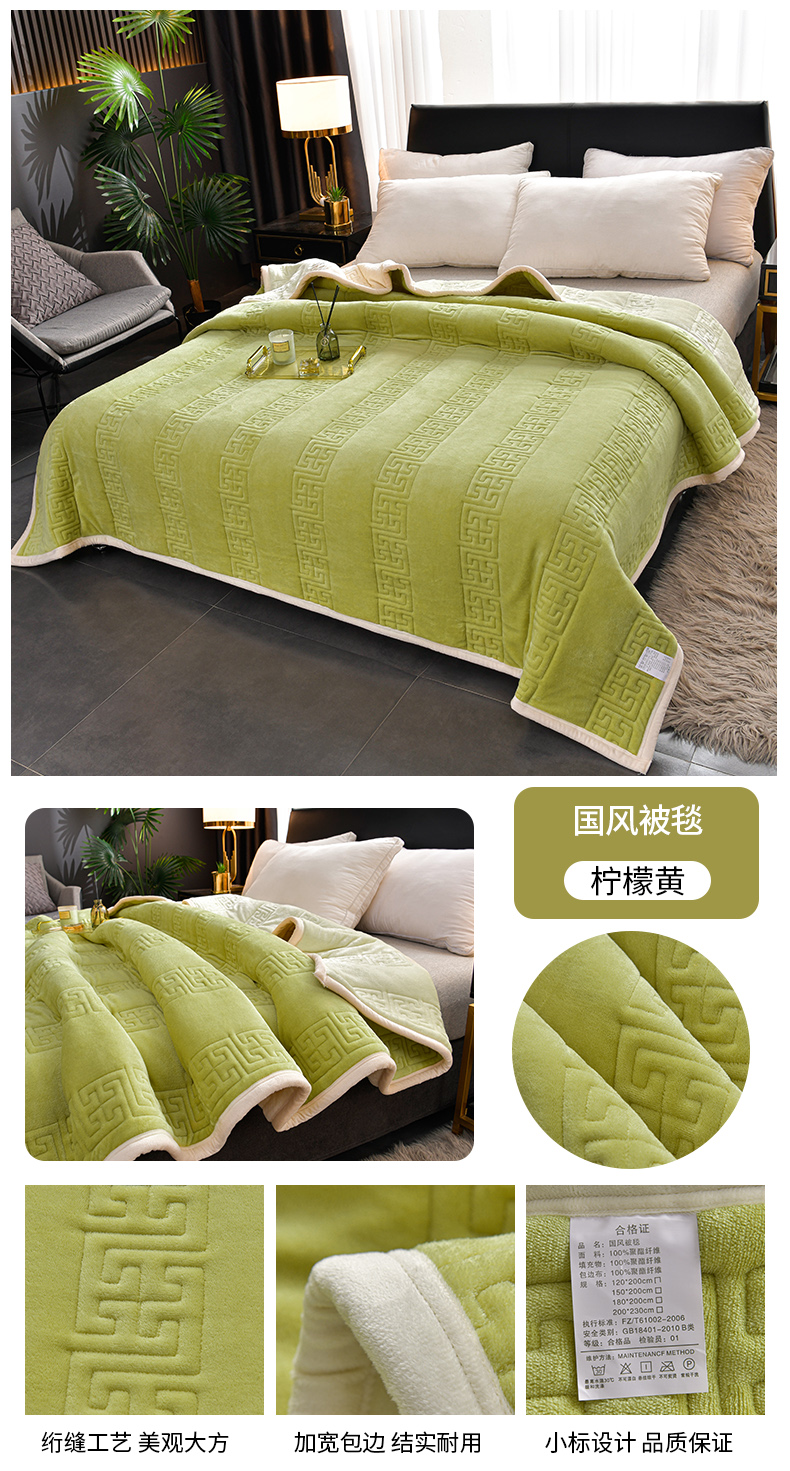 商品名称:2023新款【加厚款】国风被毯 柠檬黄