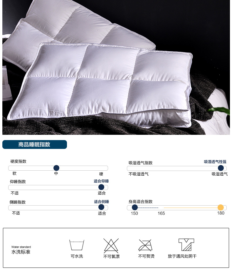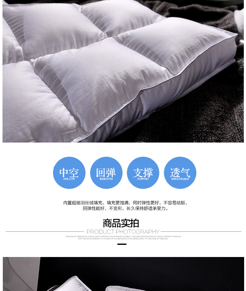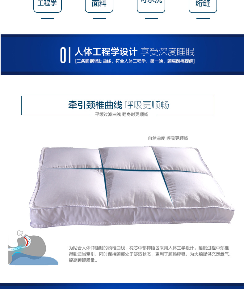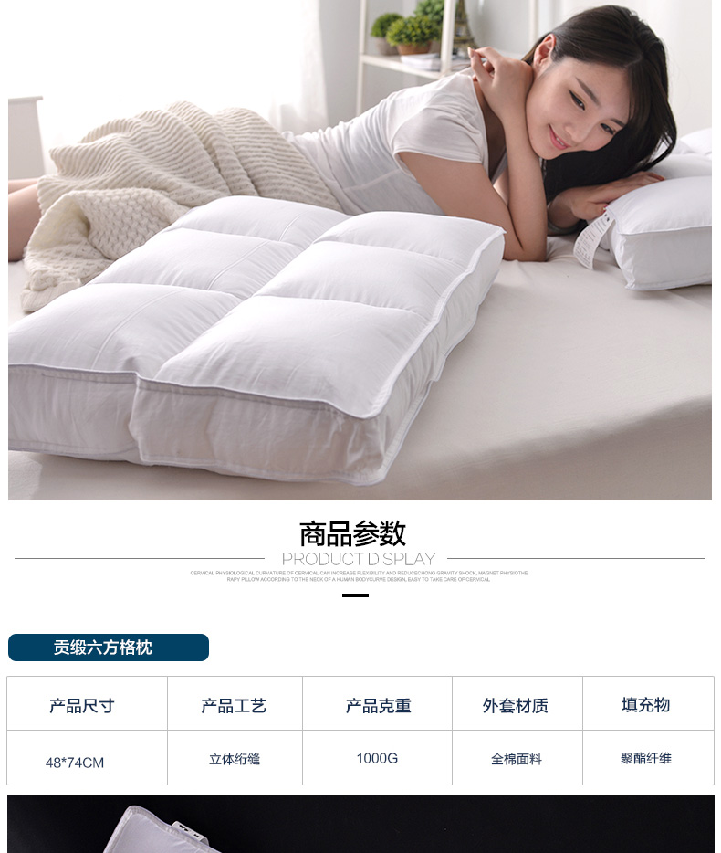 商品名称:(总)2023新款 全棉贡缎低平枕芯 分区护颈酒店枕头