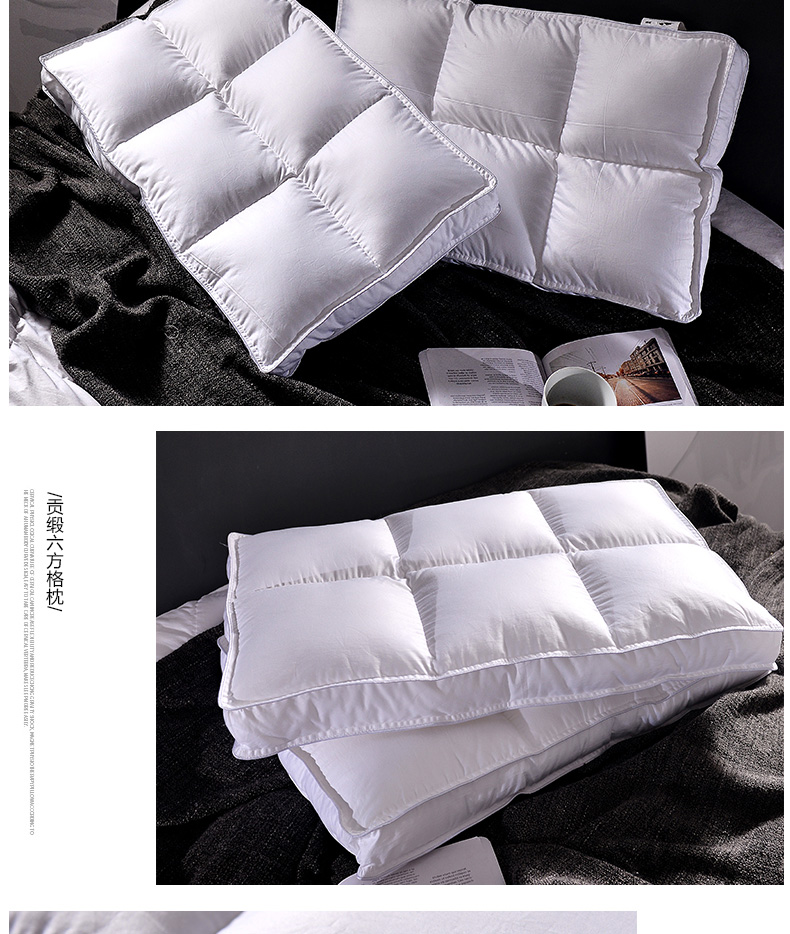 (总)2023新款 全棉贡缎低平枕芯 分区护颈酒店枕头