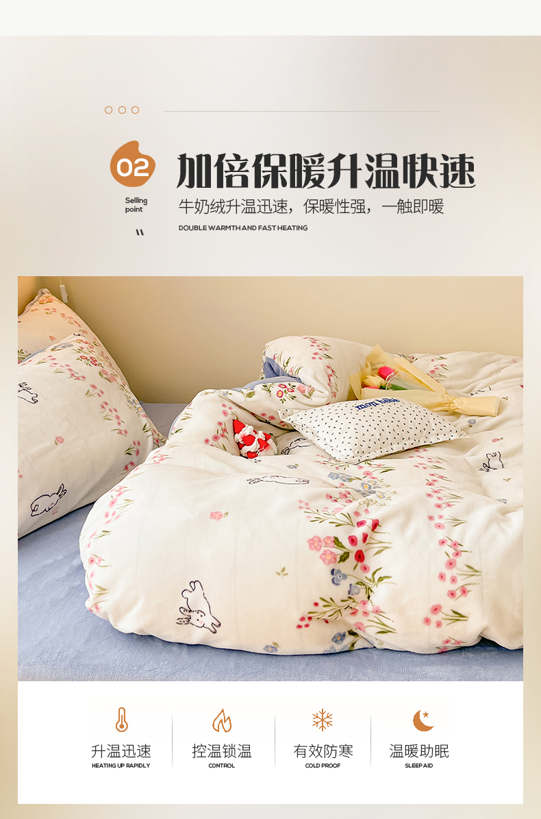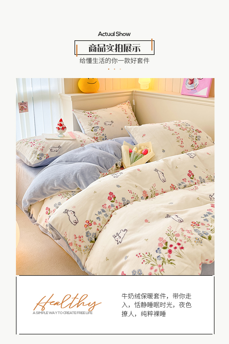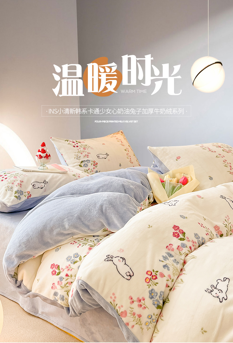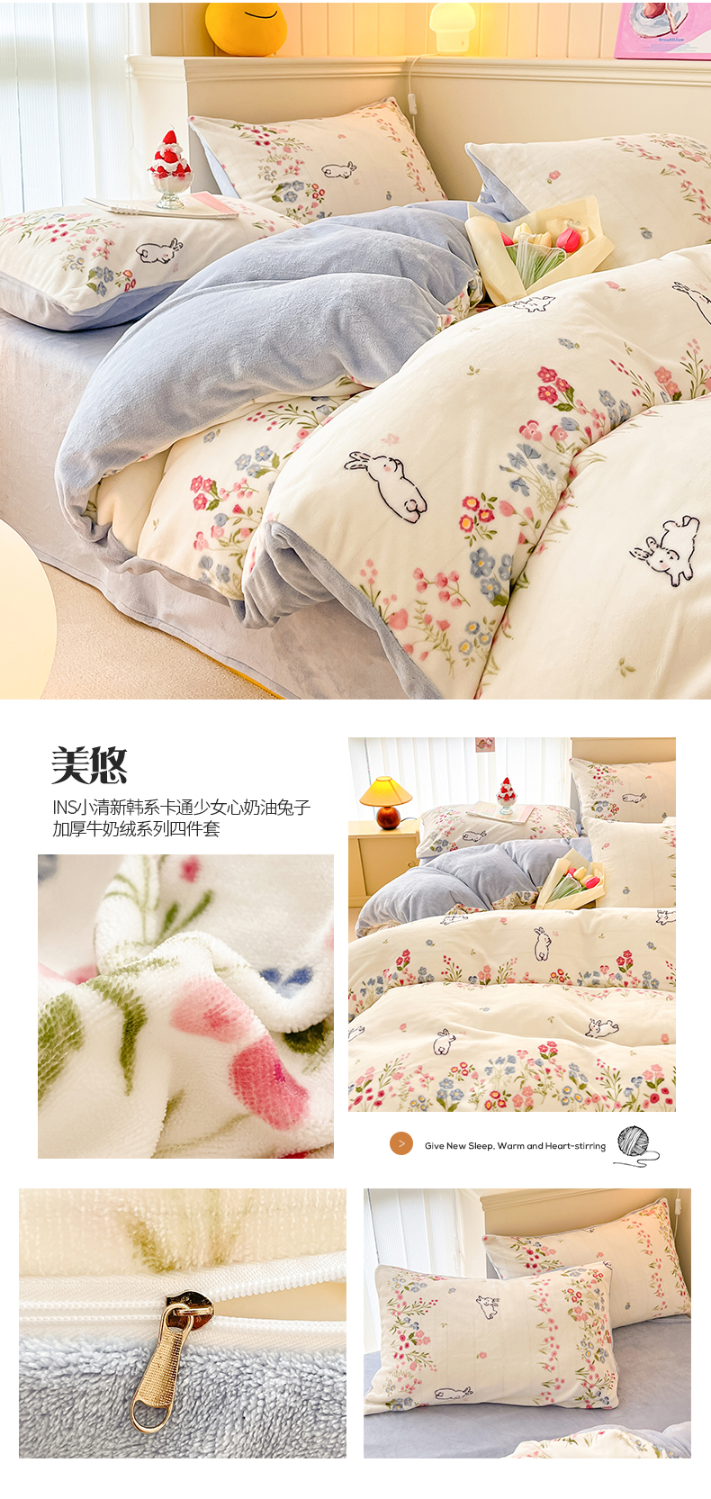 桃子 2023新款ins小清新韩系卡通少女心奶油兔子加厚牛奶绒系列四件套-第一批 绒-美悠