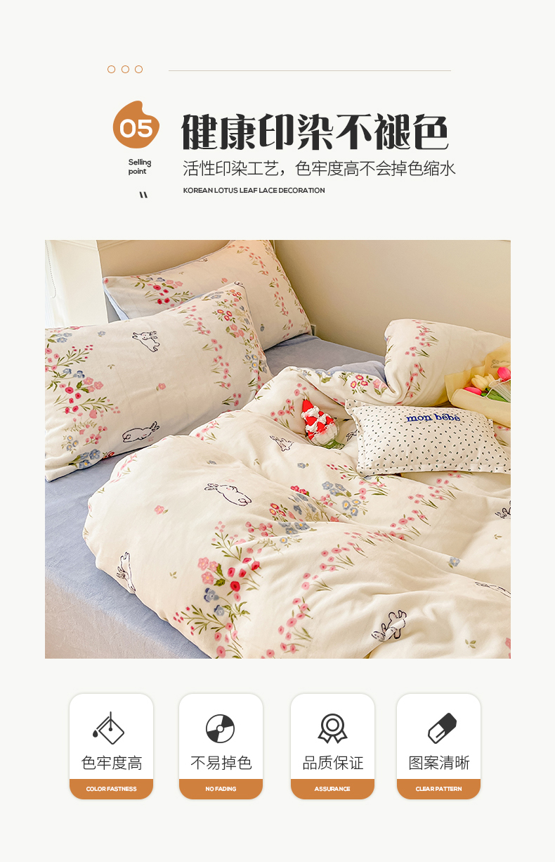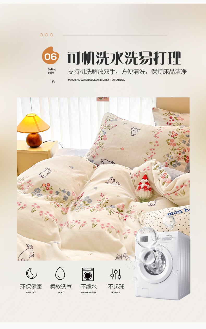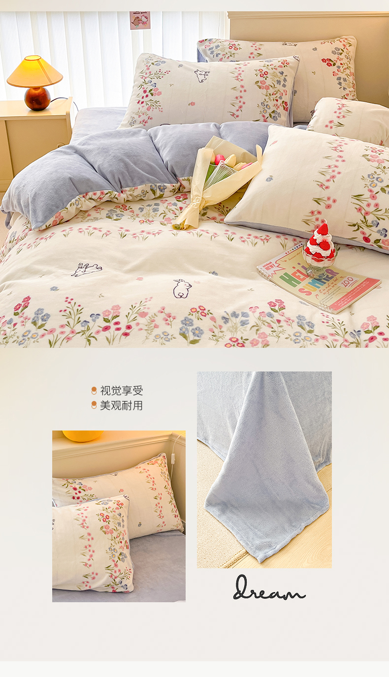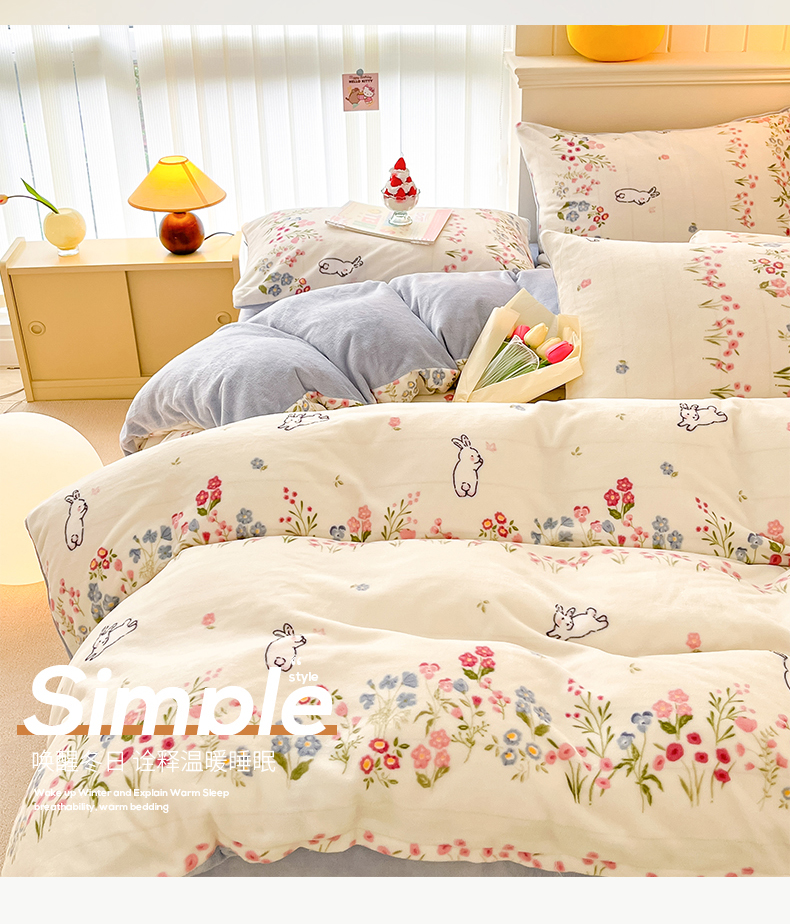 桃子 2023新款ins小清新韩系卡通少女心奶油兔子加厚牛奶绒系列四件套-第一批 绒-美悠
