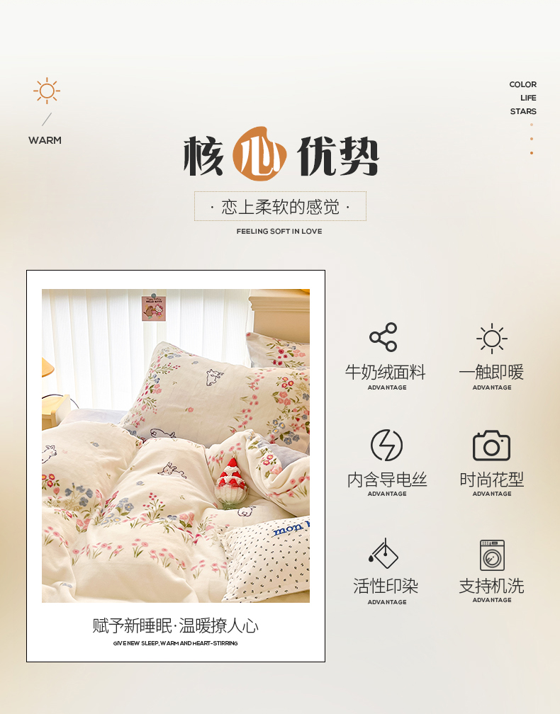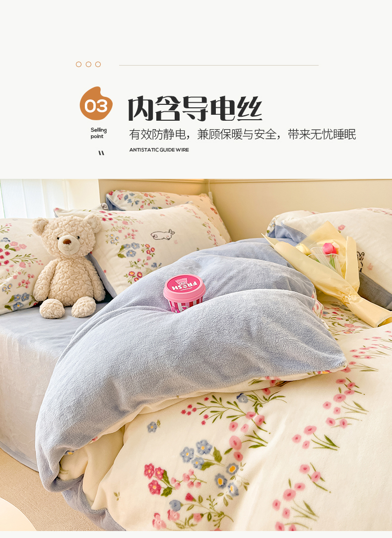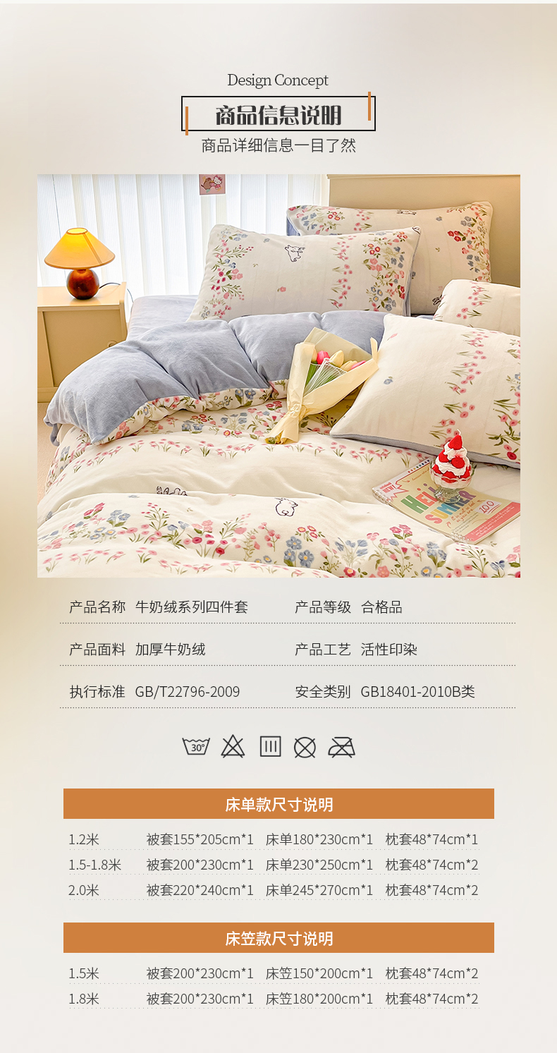 商品名称:桃子 2023新款ins小清新韩系卡通少女心奶油兔子加厚牛奶绒系列四件套-第一批 绒-美悠