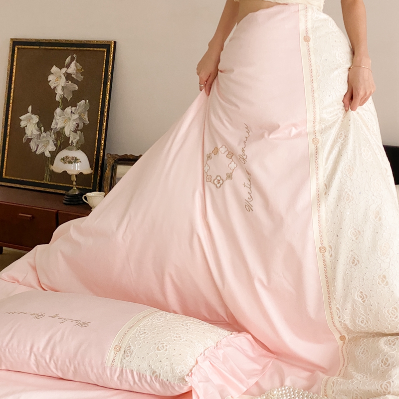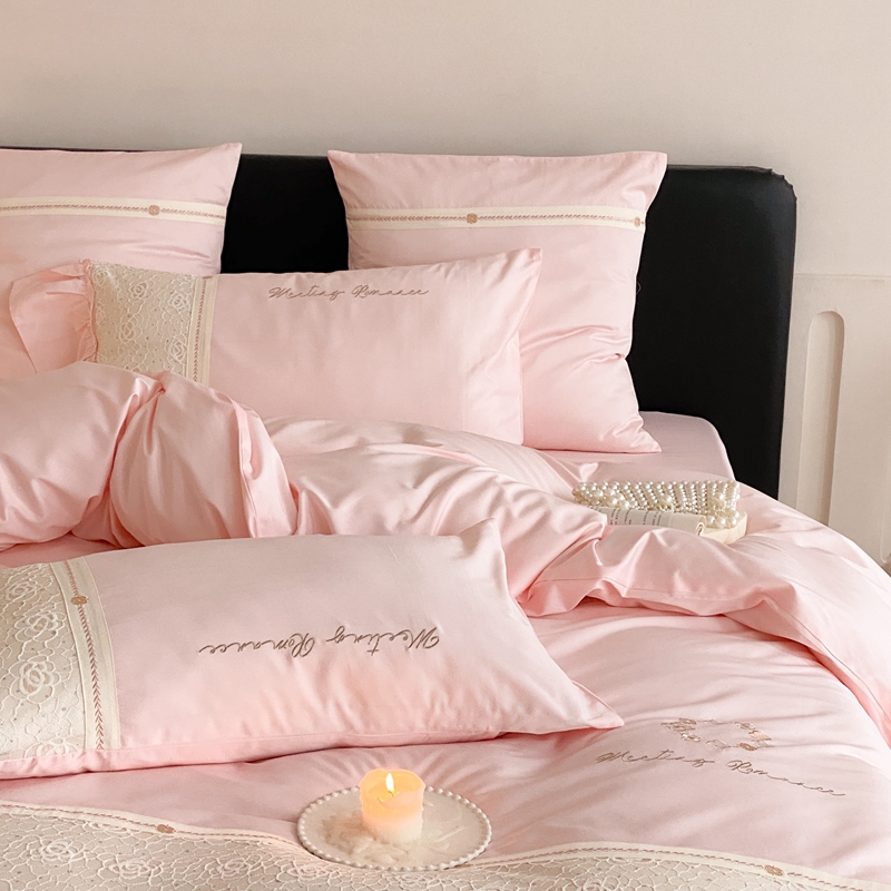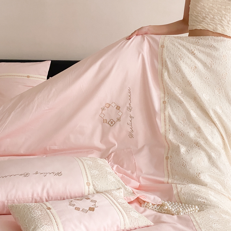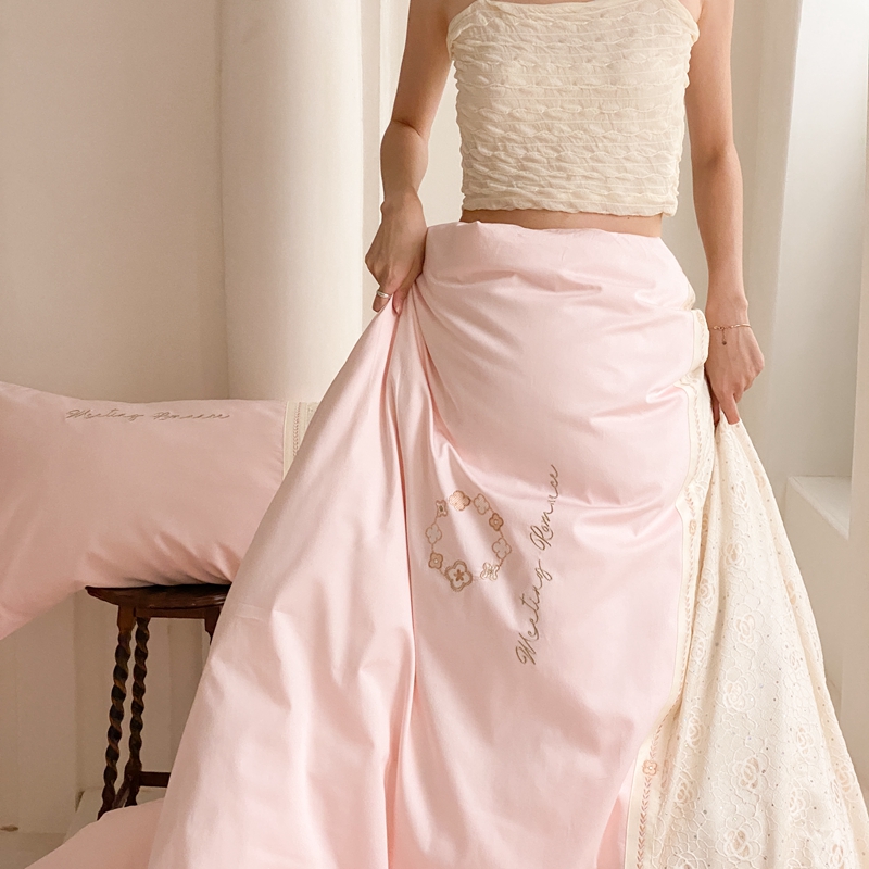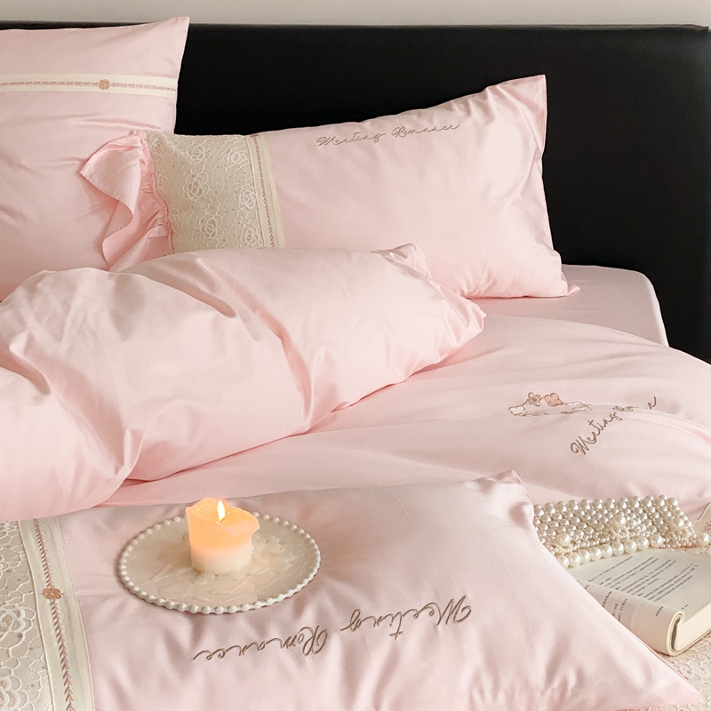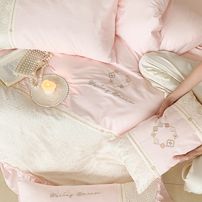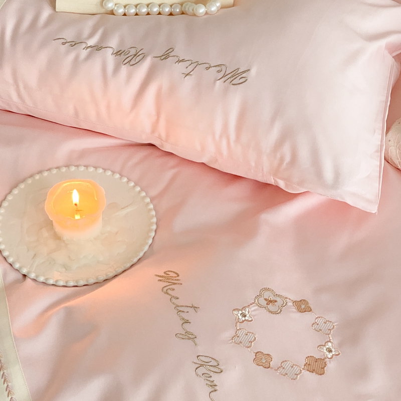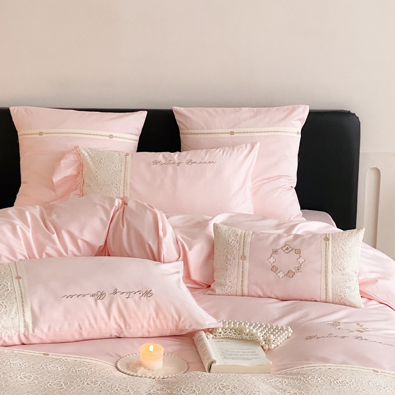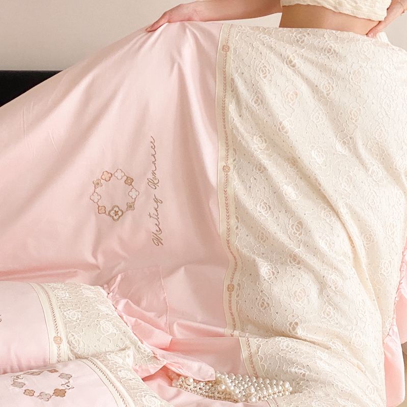 商品名称:曼布缇2025秋冬新品100S澳棉长绒棉绣花四件套-手链花 手链花 蜜汁粉