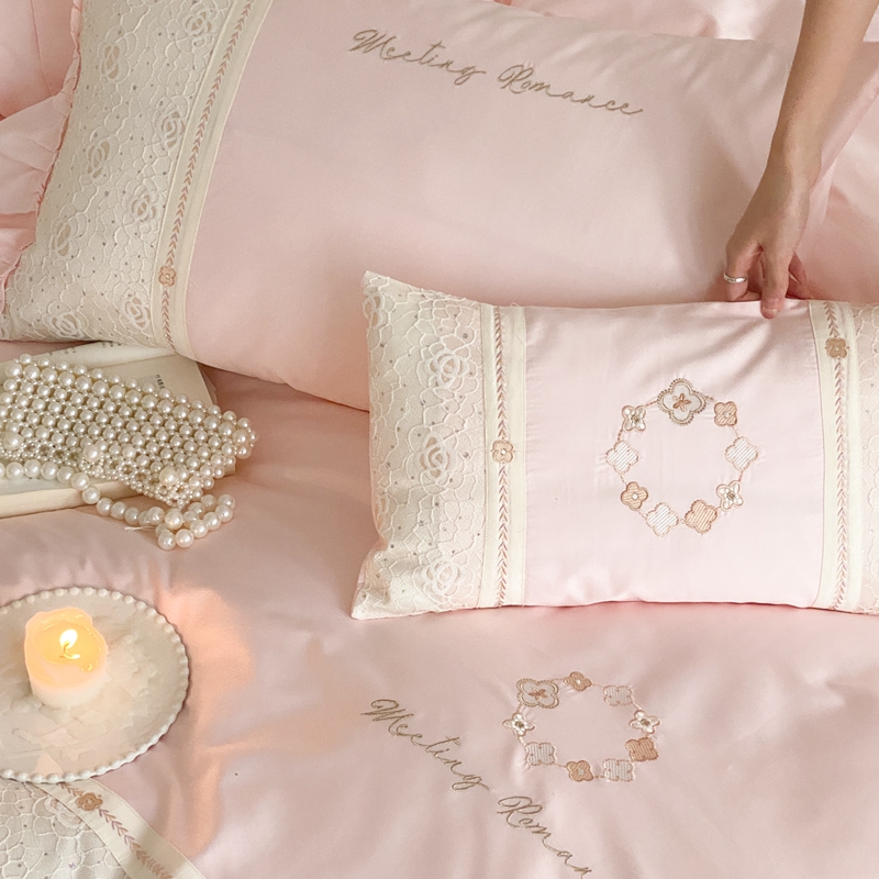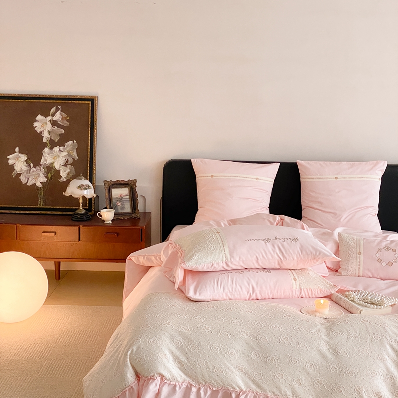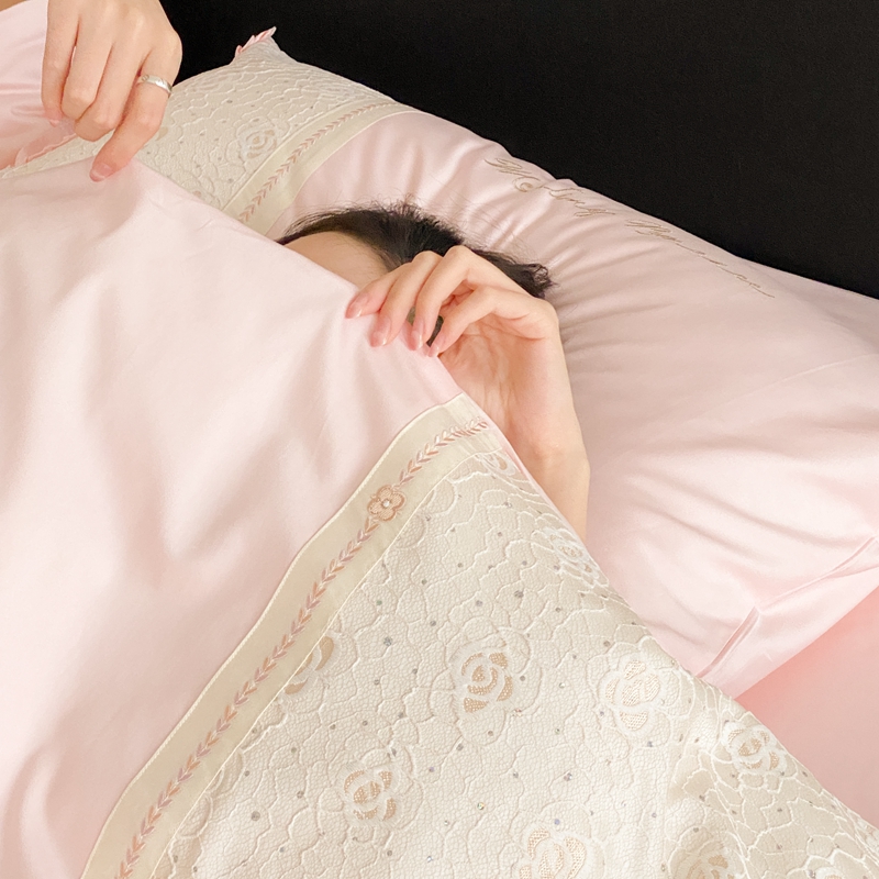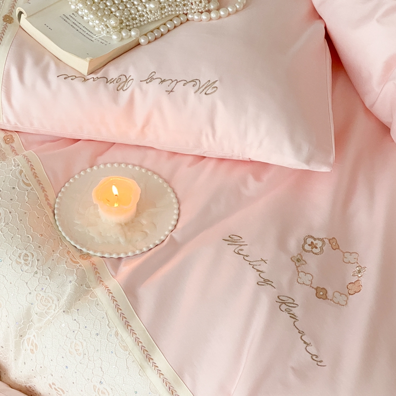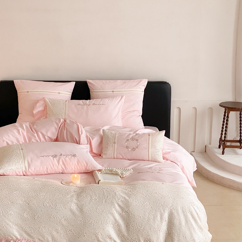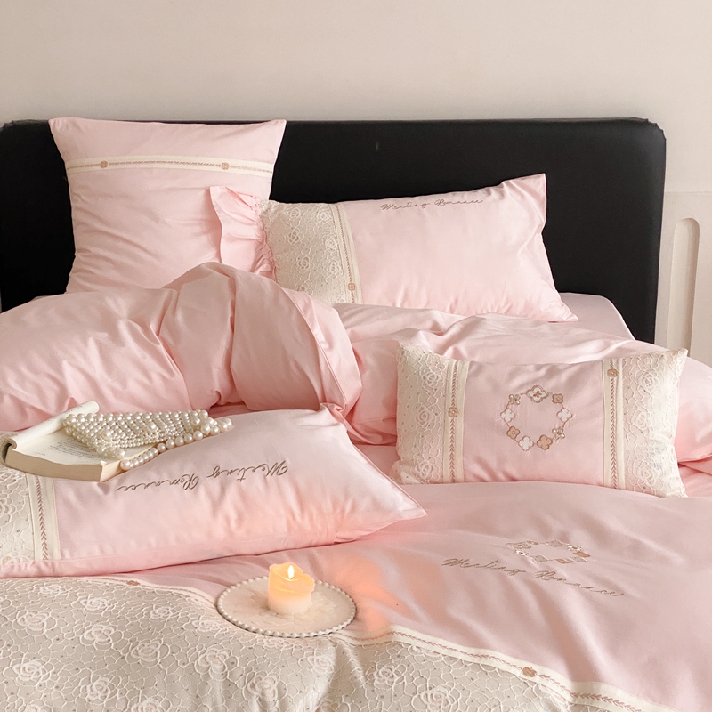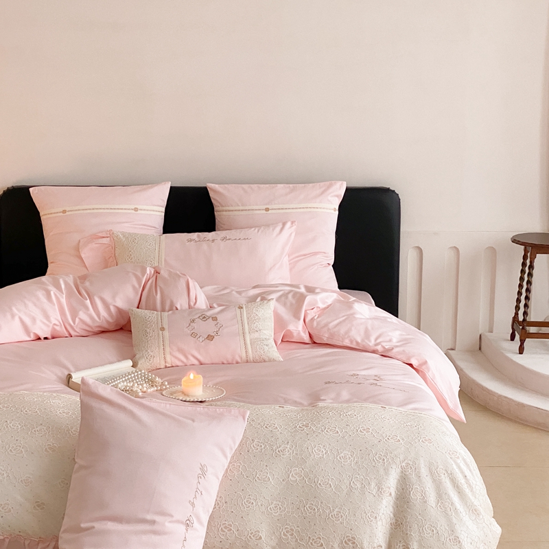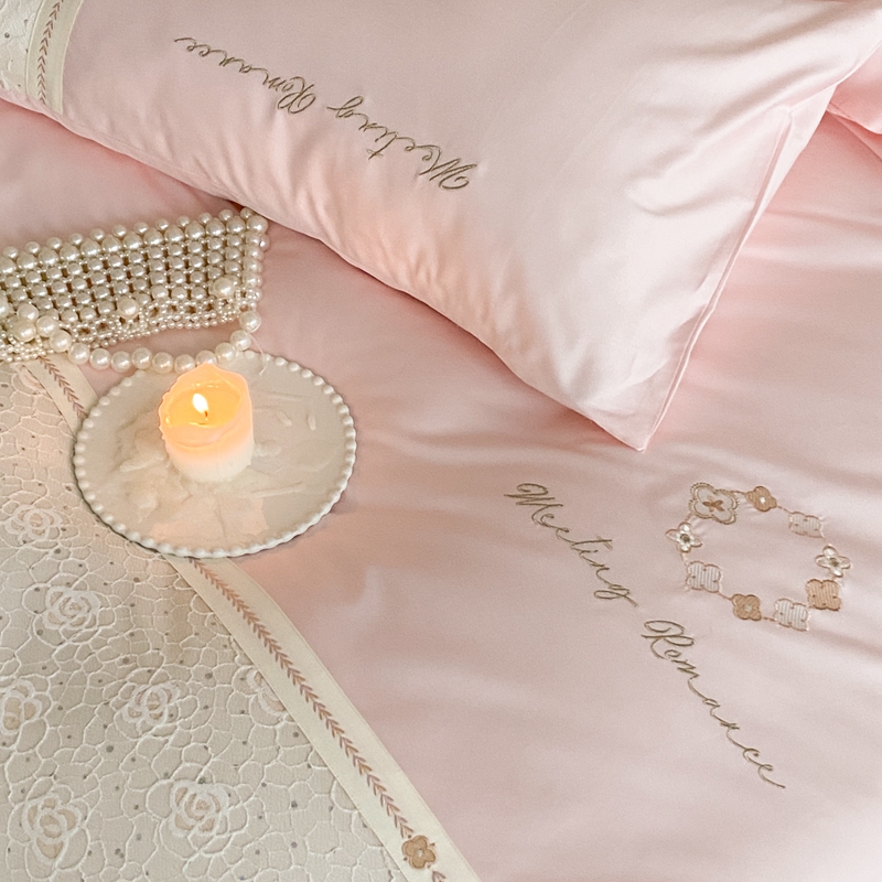 商品名称:曼布缇2025秋冬新品100S澳棉长绒棉绣花四件套-手链花 手链花 蜜汁粉