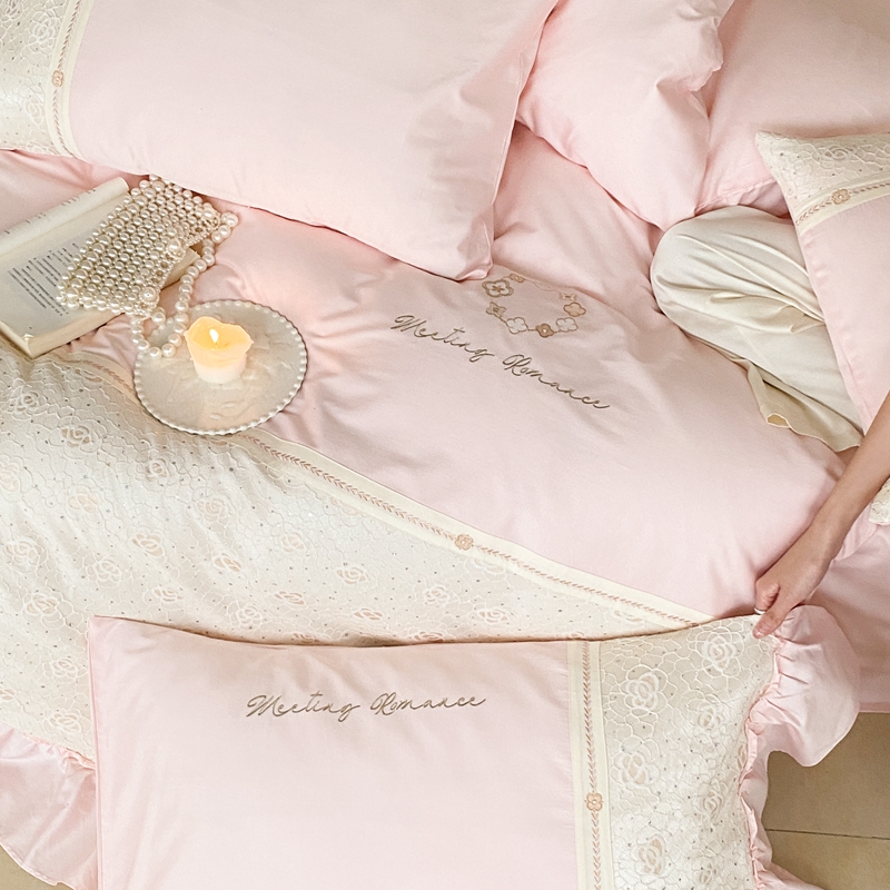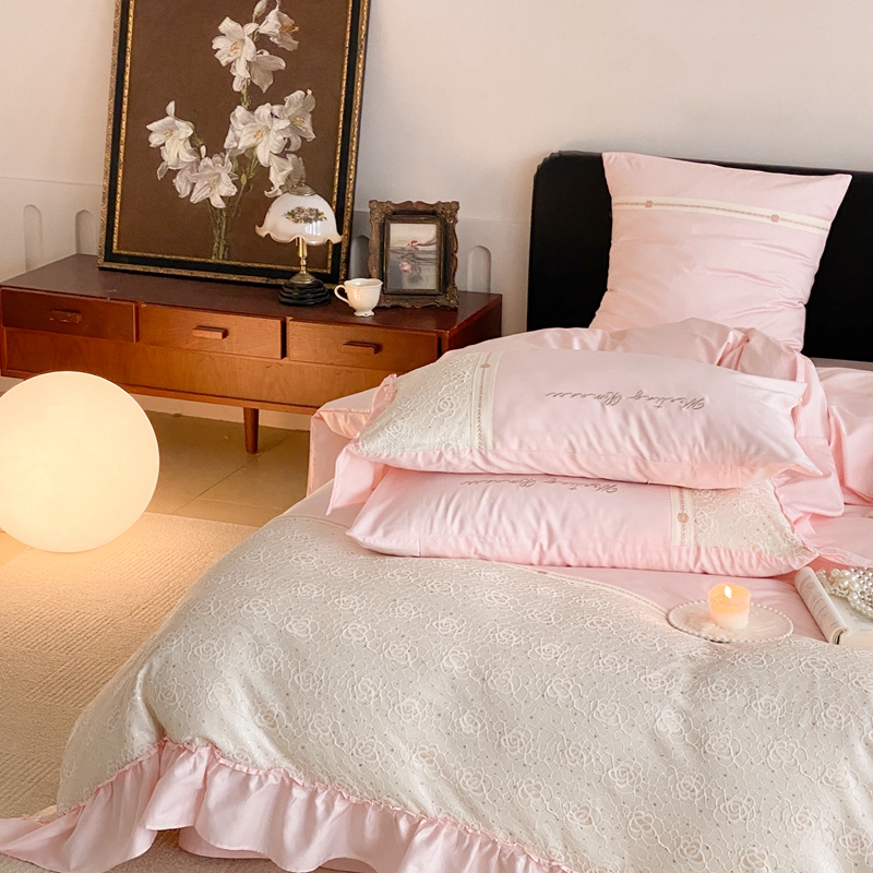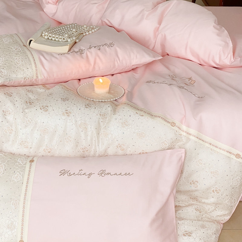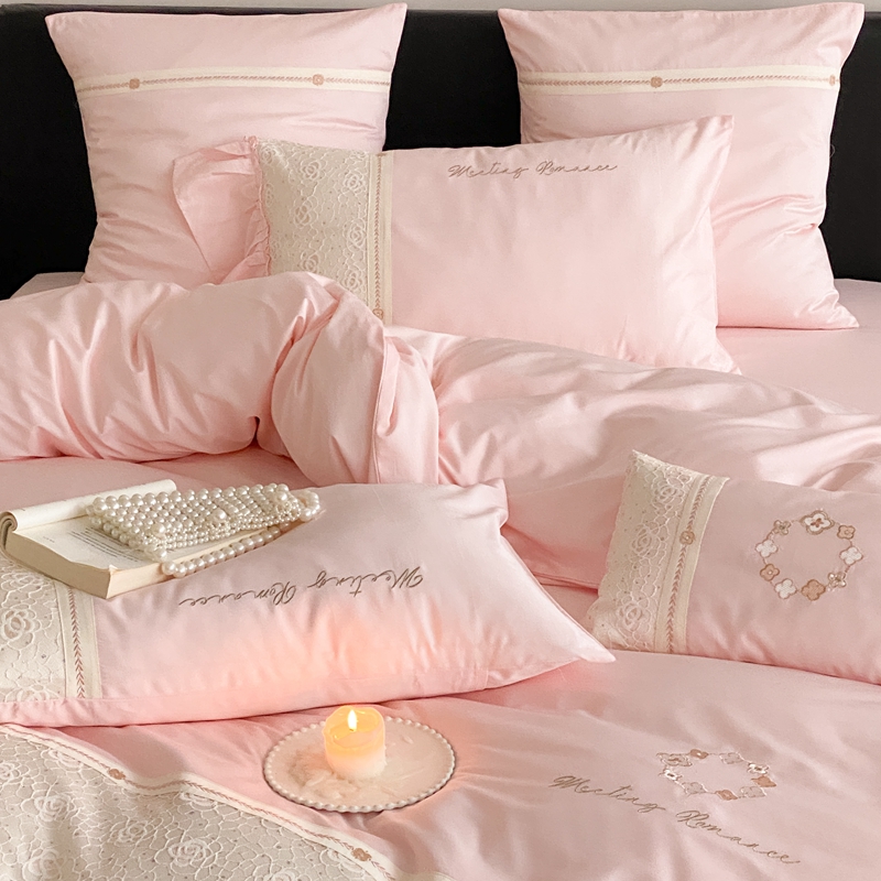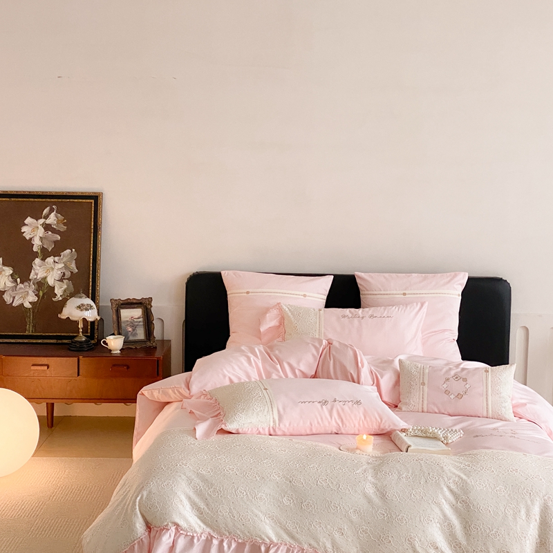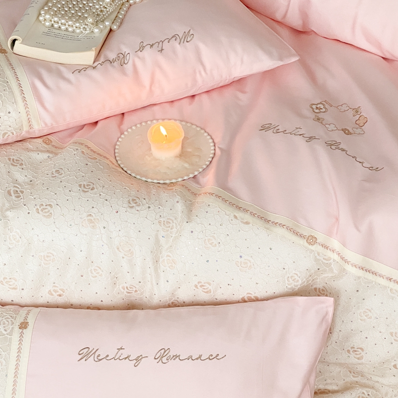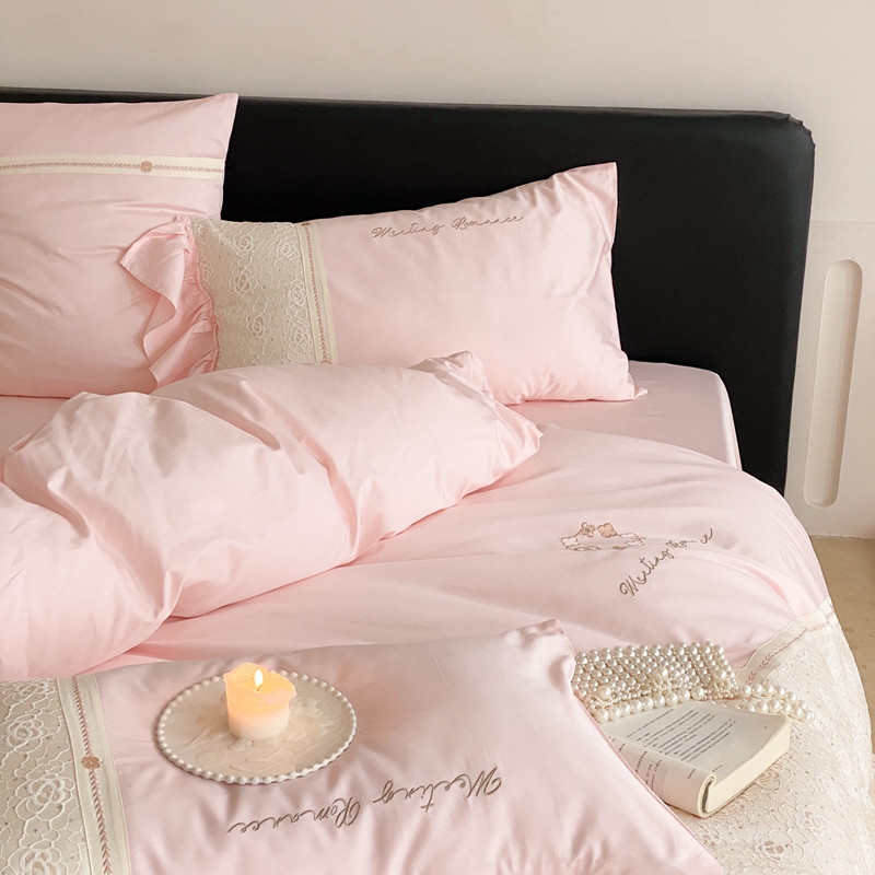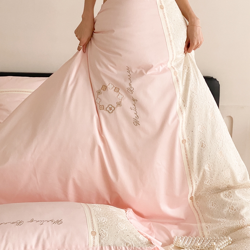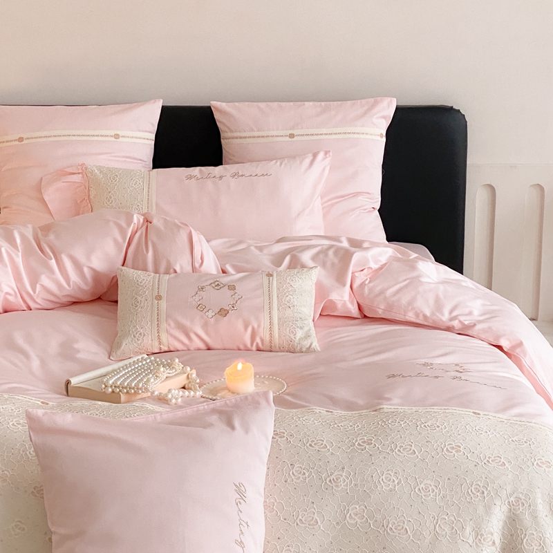 商品名称:曼布缇2025秋冬新品100S澳棉长绒棉绣花四件套-手链花 手链花 蜜汁粉