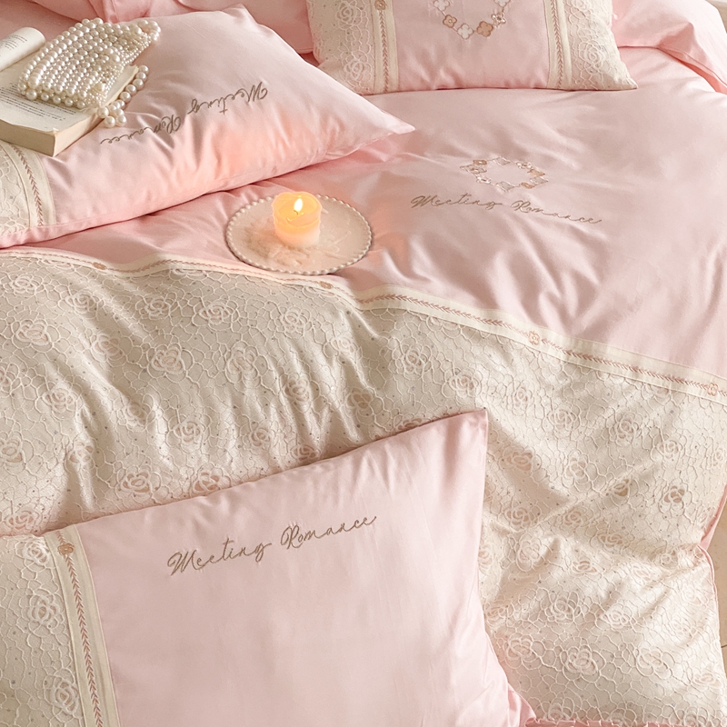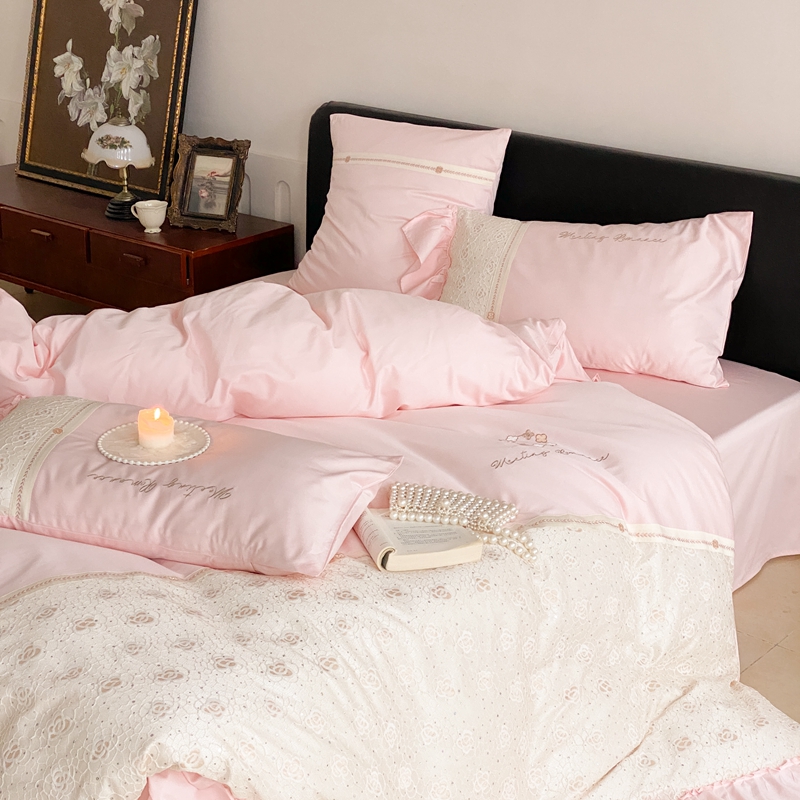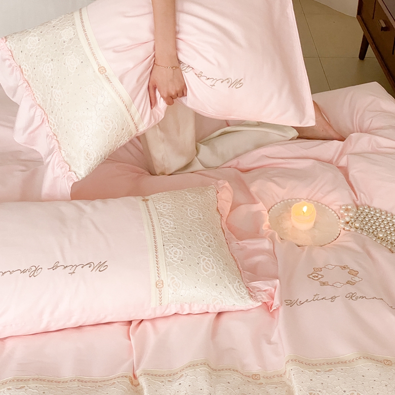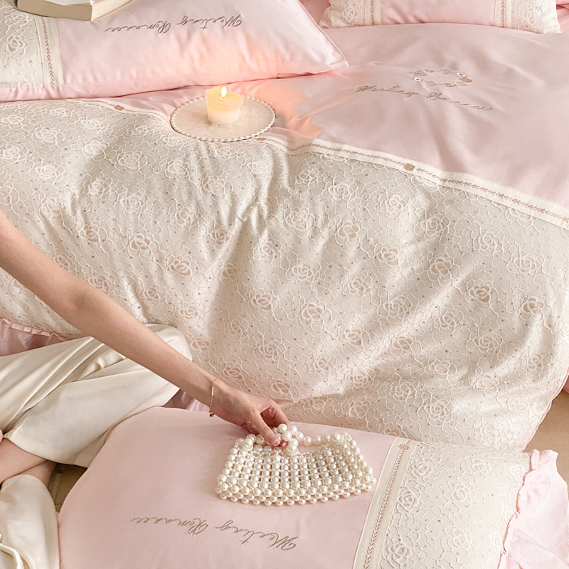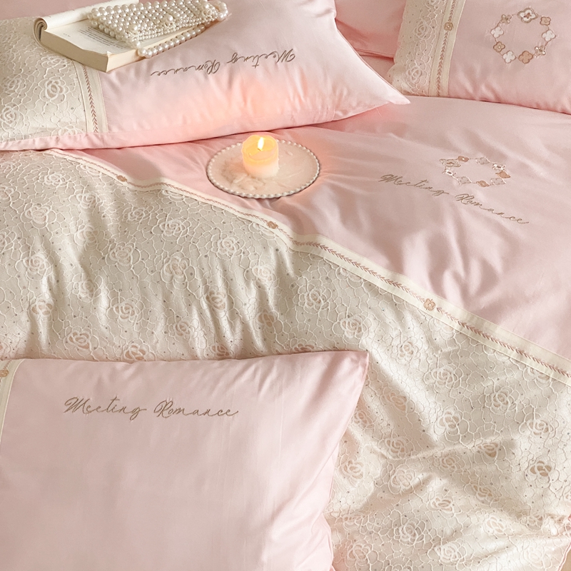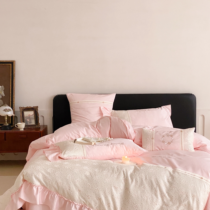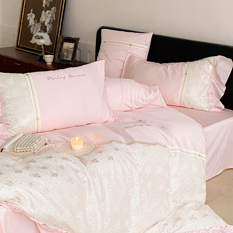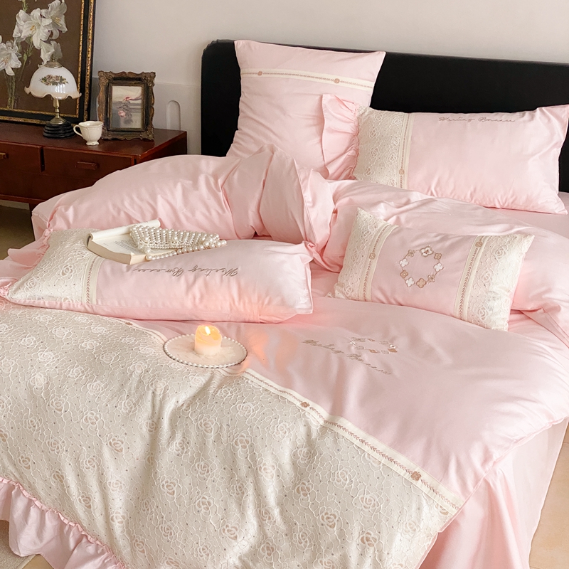 商品名称:曼布缇2025秋冬新品100S澳棉长绒棉绣花四件套-手链花 手链花 蜜汁粉