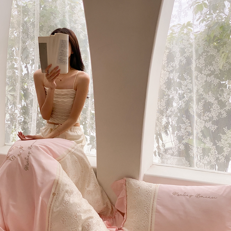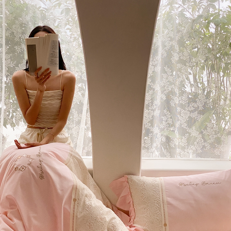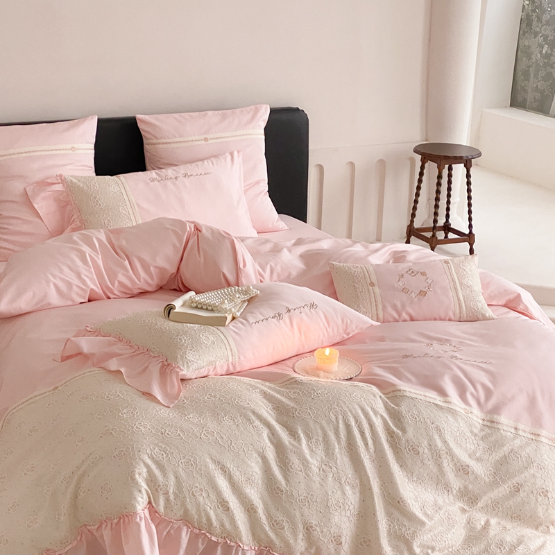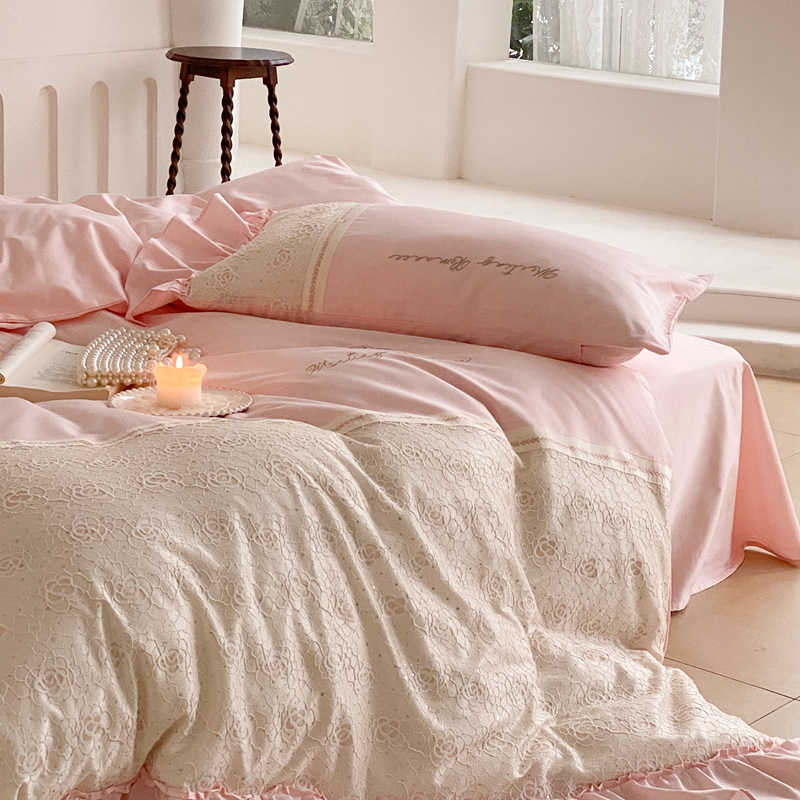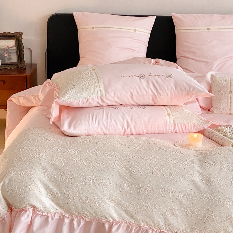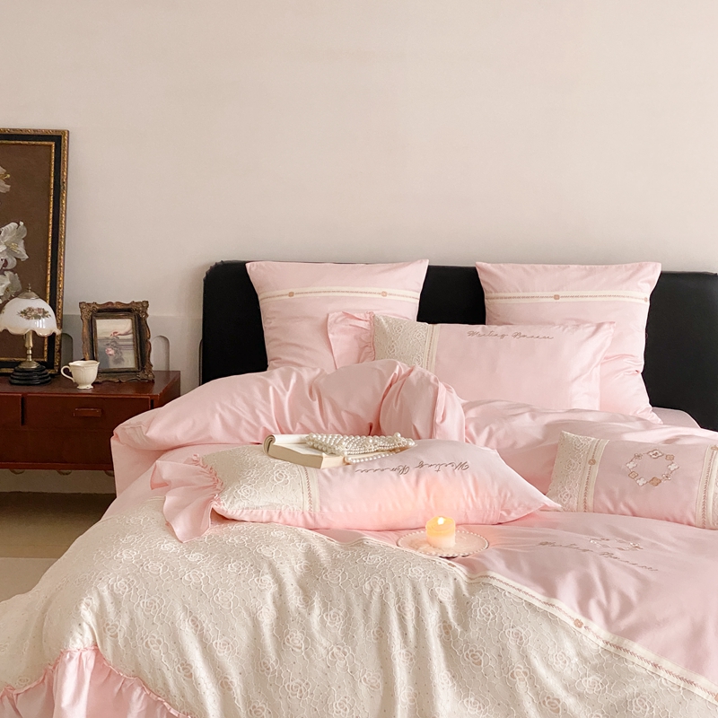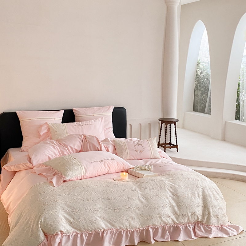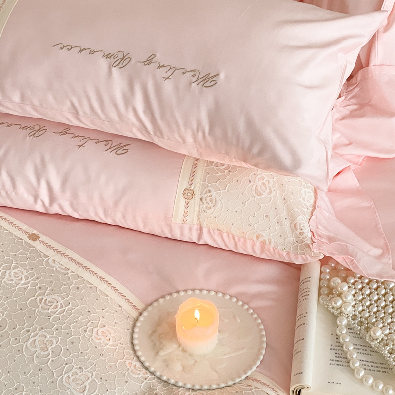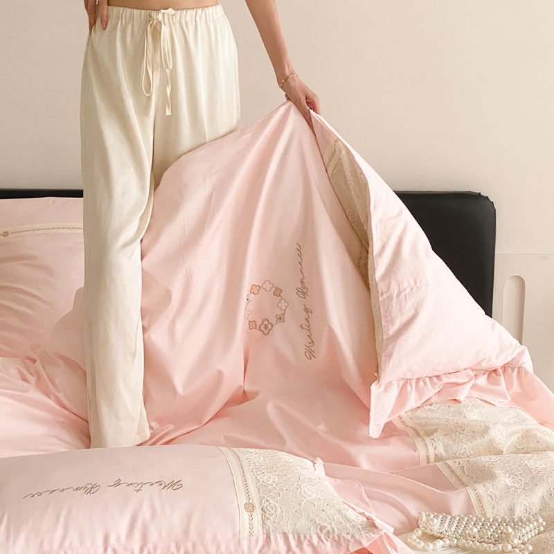 商品名称:曼布缇2025秋冬新品100S澳棉长绒棉绣花四件套-手链花 手链花 蜜汁粉