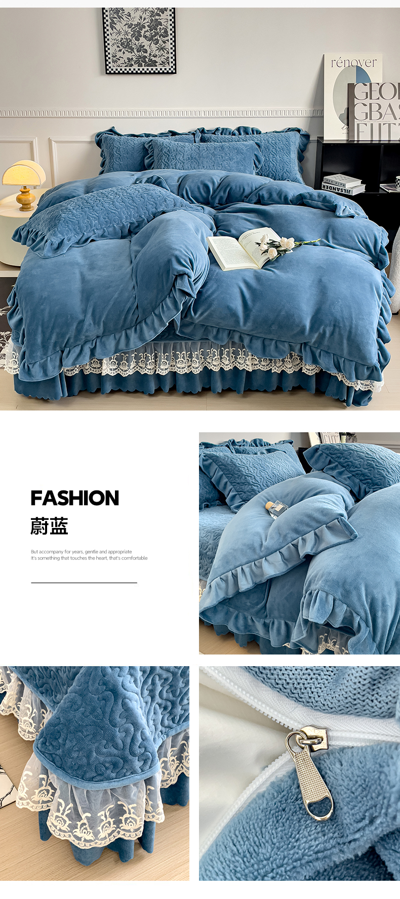 (总)铠畅家纺 2025新款牛奶绒花边床盖四件套-唯美,唯美爵士蓝,唯美香草绿,唯美香妃玉,唯美星辰灰,唯美星空紫,唯美珍珠白