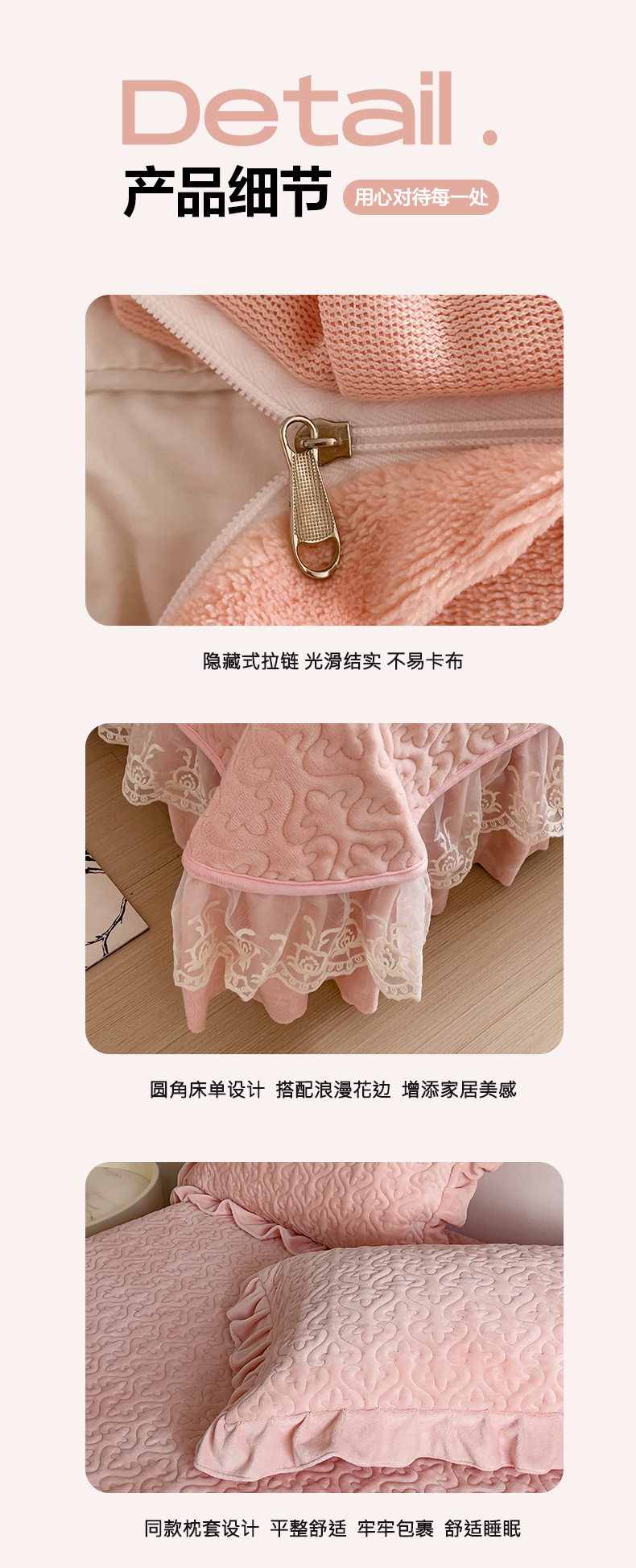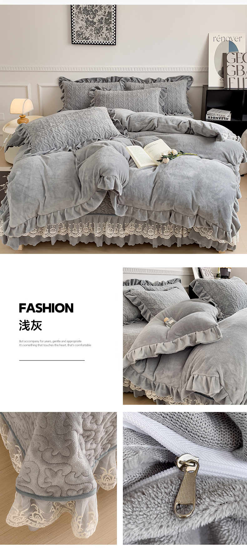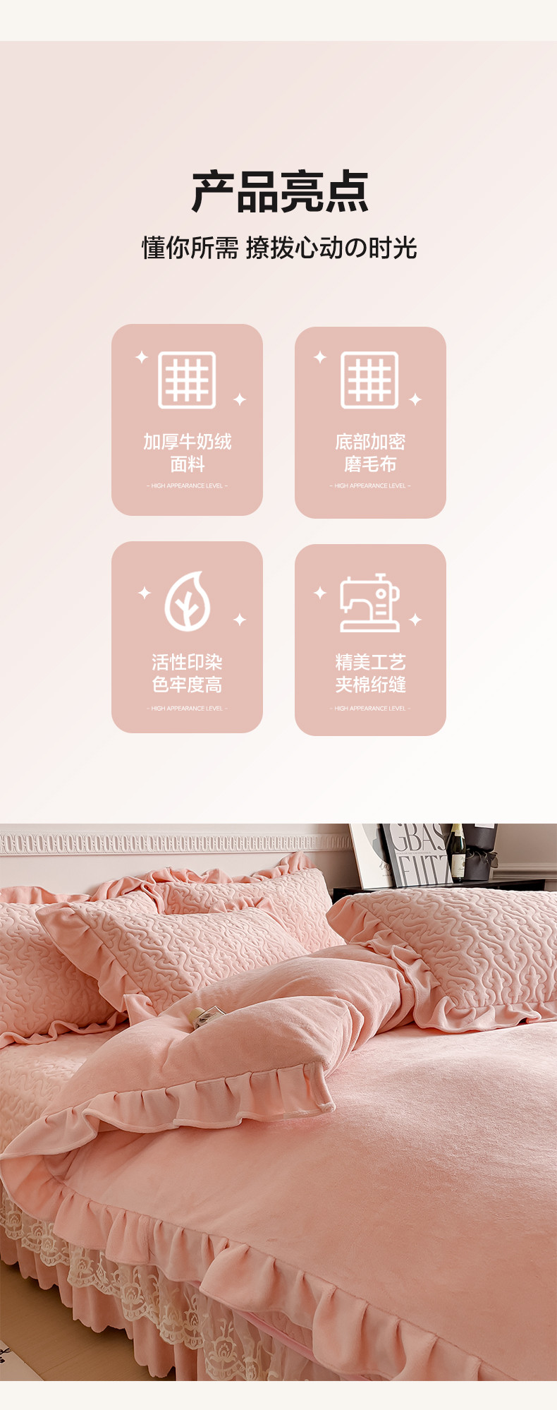 商品名称:(总)铠畅家纺 2023新款纯色蕾丝牛奶绒床盖四件套-遇见系列
