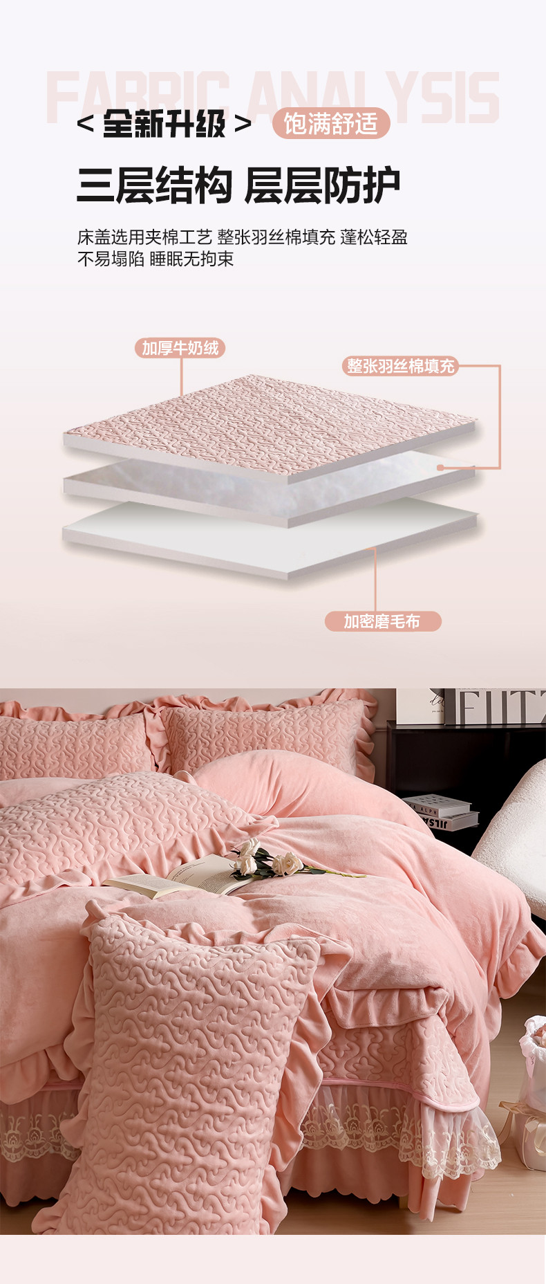 (总)铠畅家纺 2023新款纯色蕾丝牛奶绒床盖四件套-遇见系列