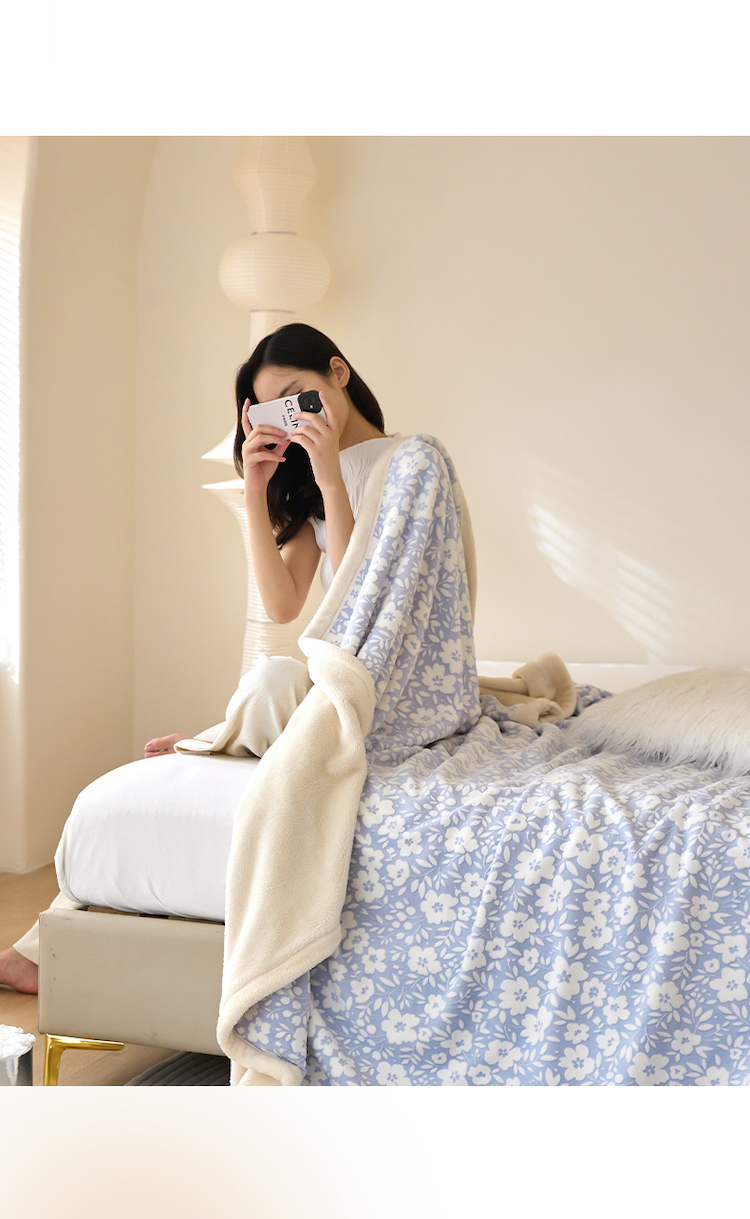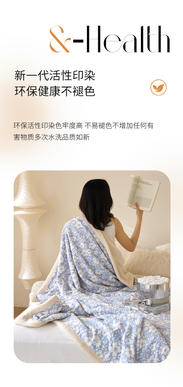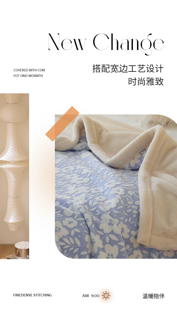 铭动 2023新款雕花绒保暖毯-小花毛毯 烟花蓝色