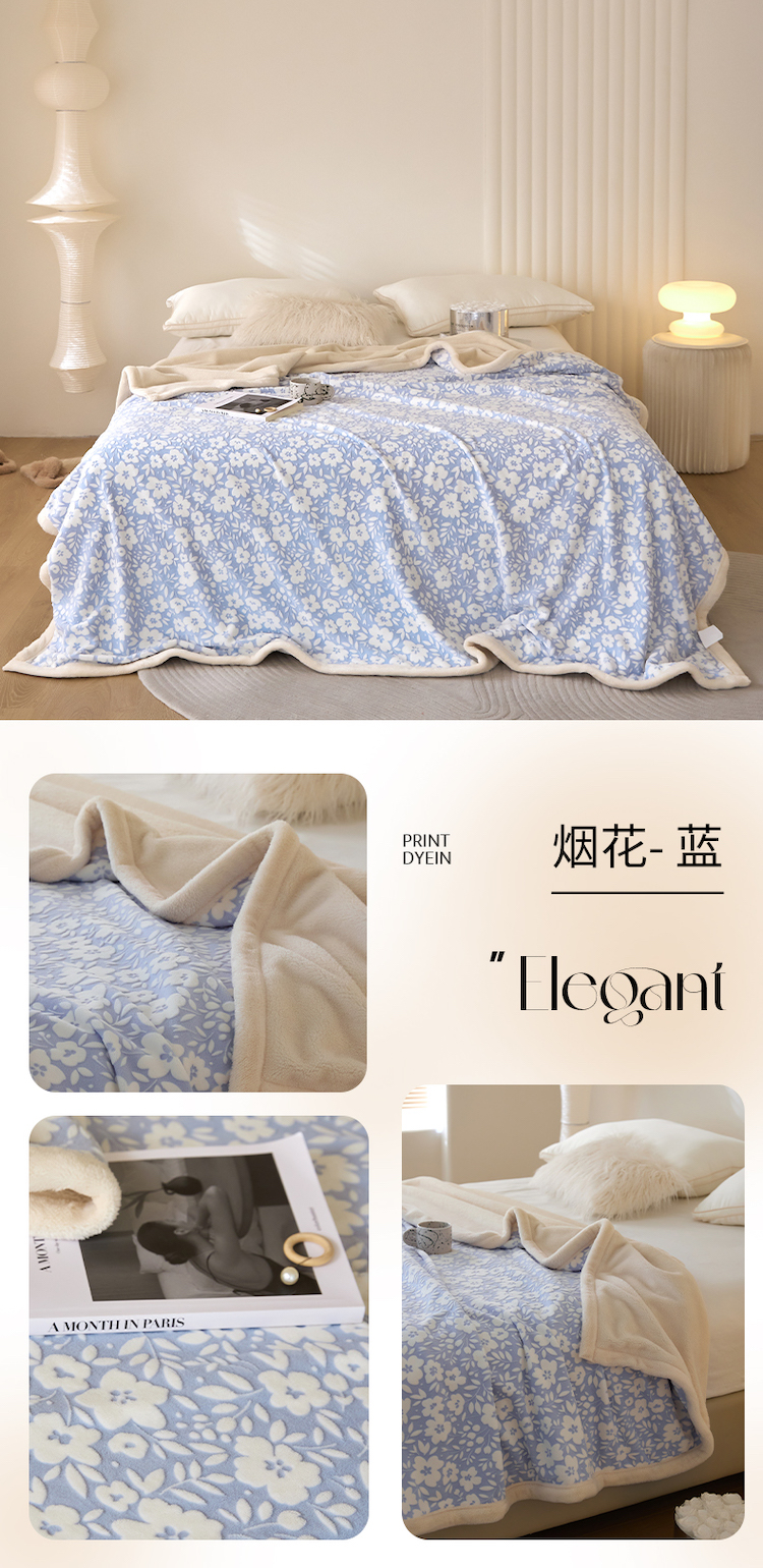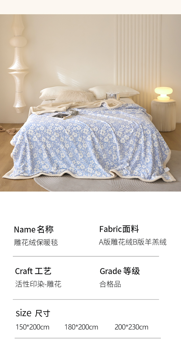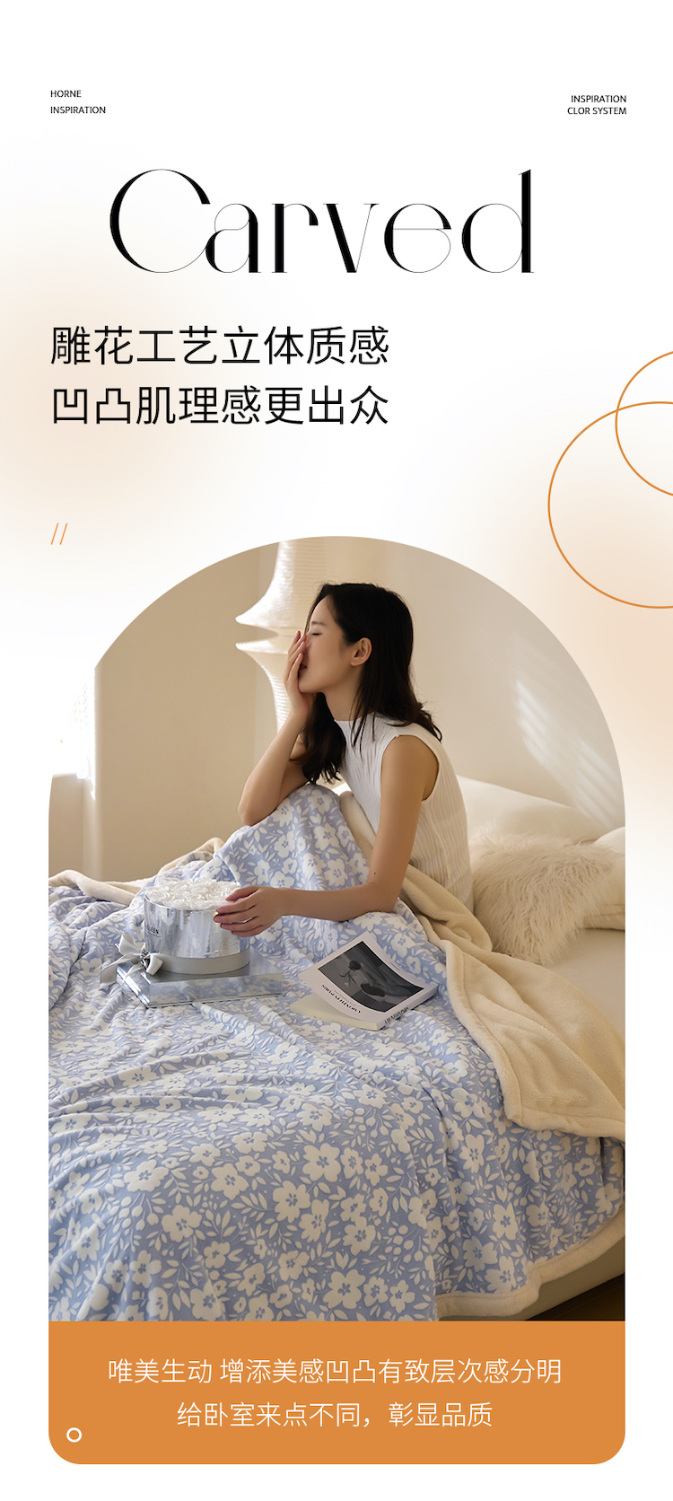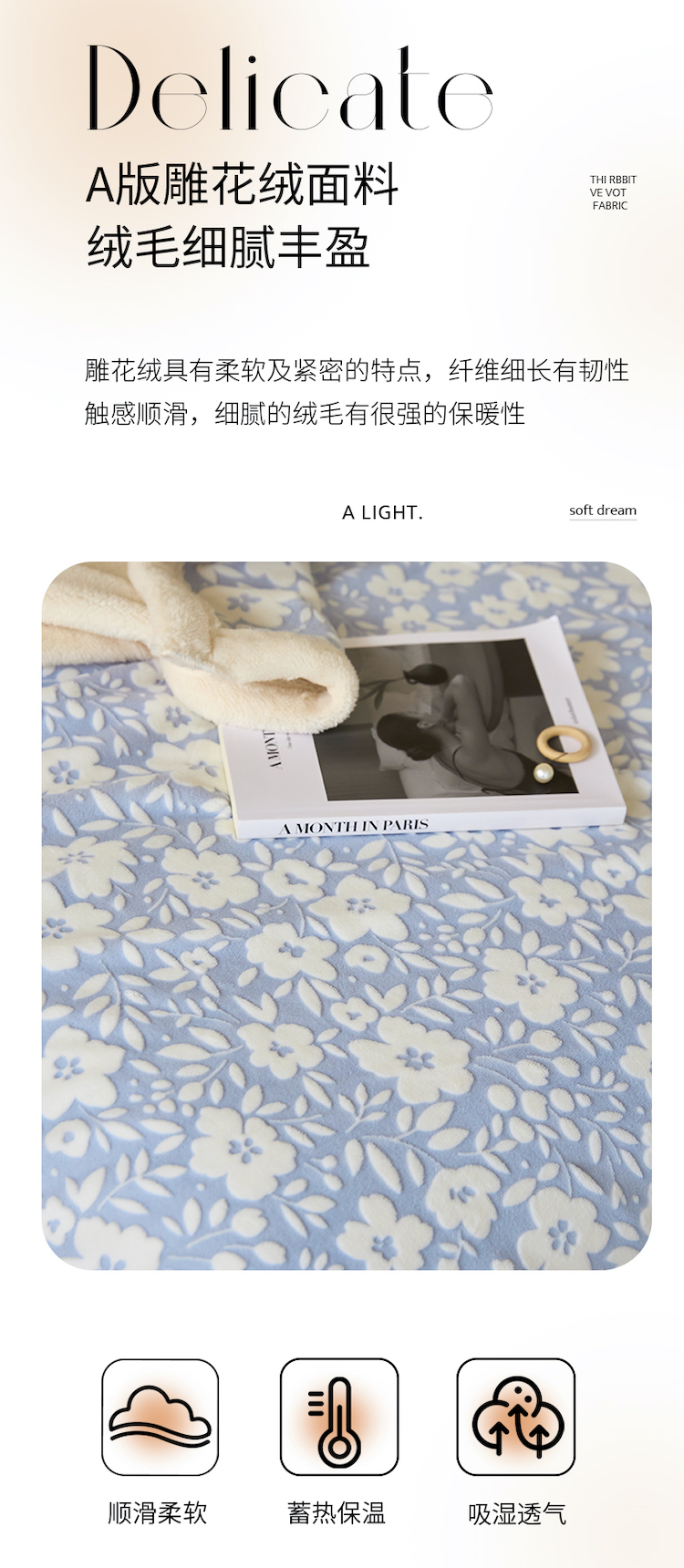 商品名称:铭动 2023新款雕花绒保暖毯-小花毛毯 烟花蓝色