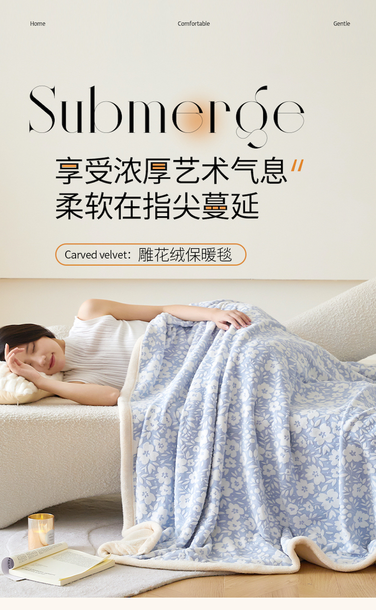 (总)铭动 2024新款雕花绒保暖毯-悠若毛毯,粉,卡其,蓝,绿