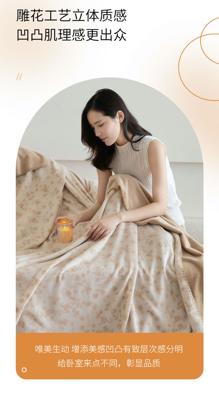 商品名称:铭动 2023新款雕花绒保暖毯-悠若毛毯 卡其