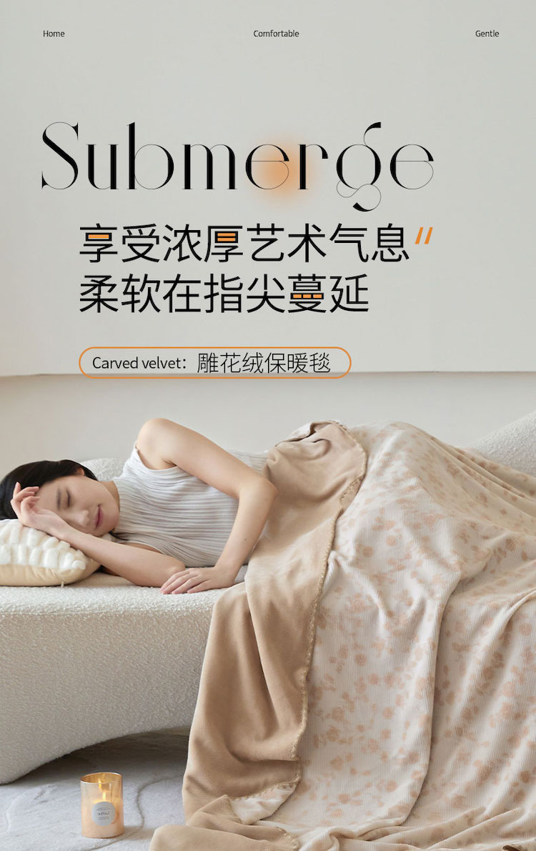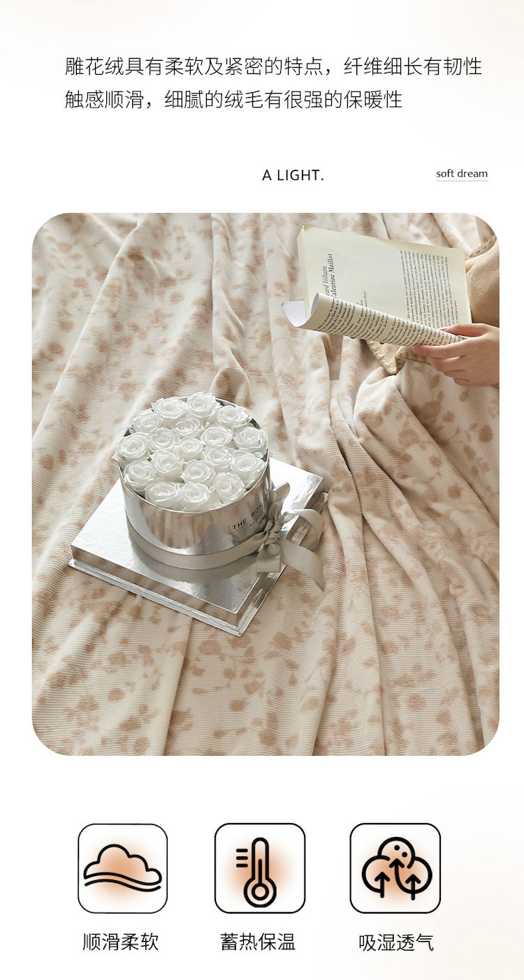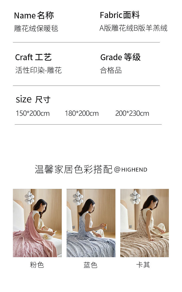 (总)铭动 2024新款雕花绒保暖毯-悠若毛毯,粉,卡其,蓝,绿