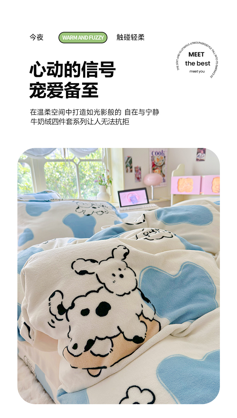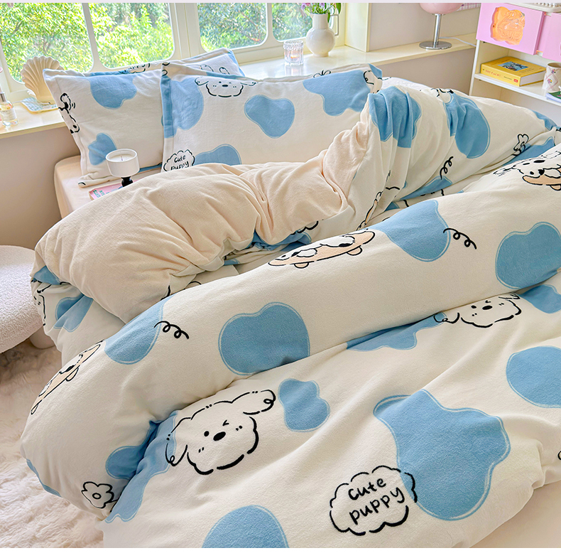 呗旺鹿 2023新款高克重加厚印花牛奶绒四件套直播 顽皮狗