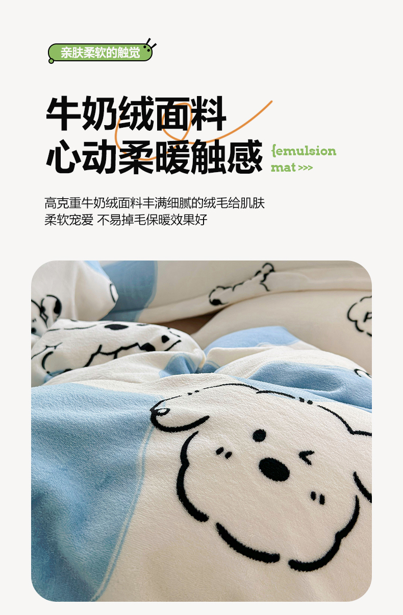 商品名称:呗旺鹿 2023新款高克重加厚印花牛奶绒四件套直播 顽皮狗