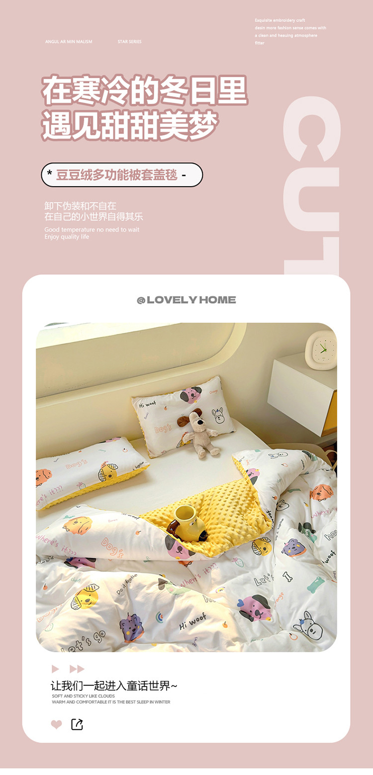 希诺 2023新款普版豆豆绒多功能被套盖毯针织棉宝宝盖毯 萌宠乐园