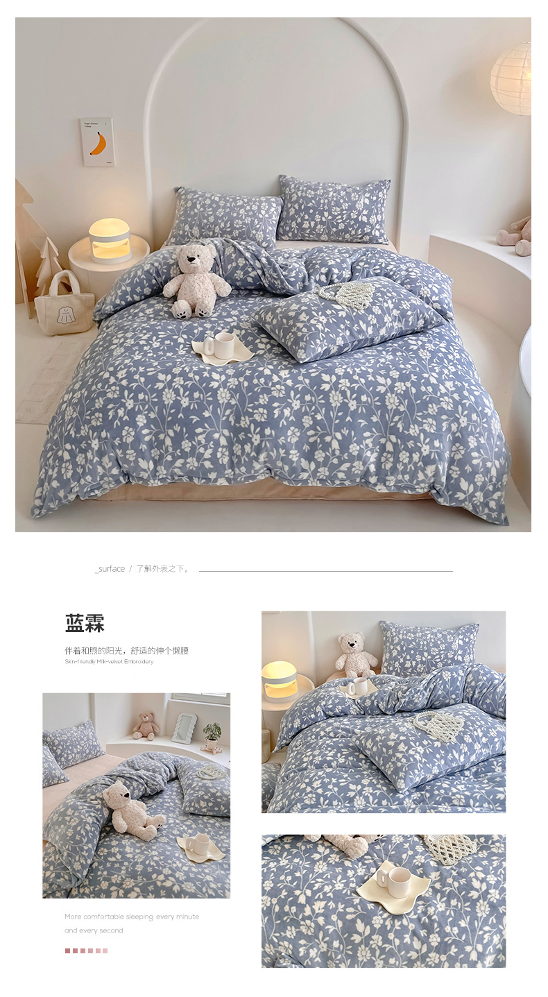 商品名称:潘朵拉 2023新款秋冬ins韩系牛奶绒印花四件套 蓝霖