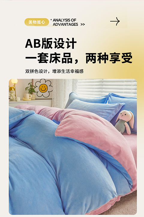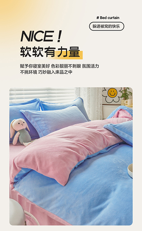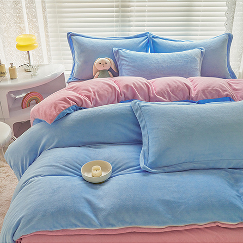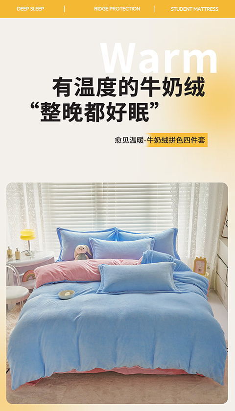 当前位置: 91家纺网 > 商品网购 > 床品套件 > 四件套 > 牛奶绒四件套 > 慕晨纯色牛奶绒法莱绒拼色三四件套单被套 奶油蓝+奶油粉