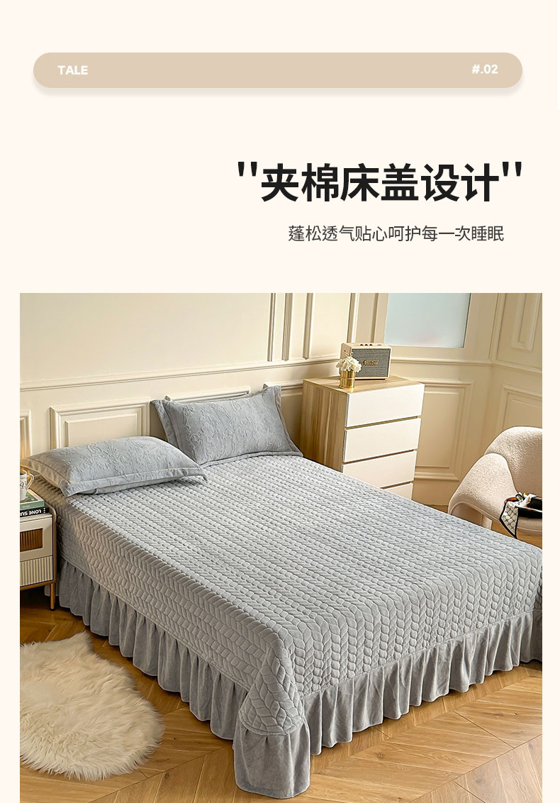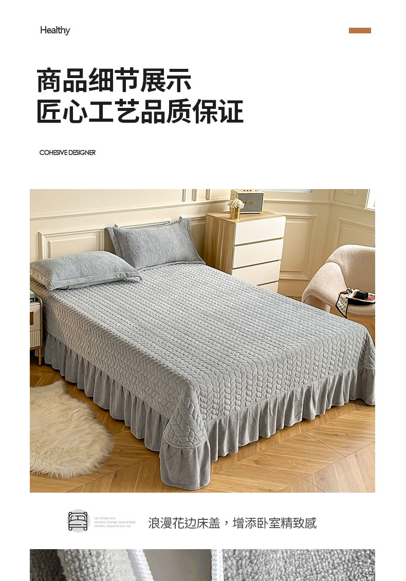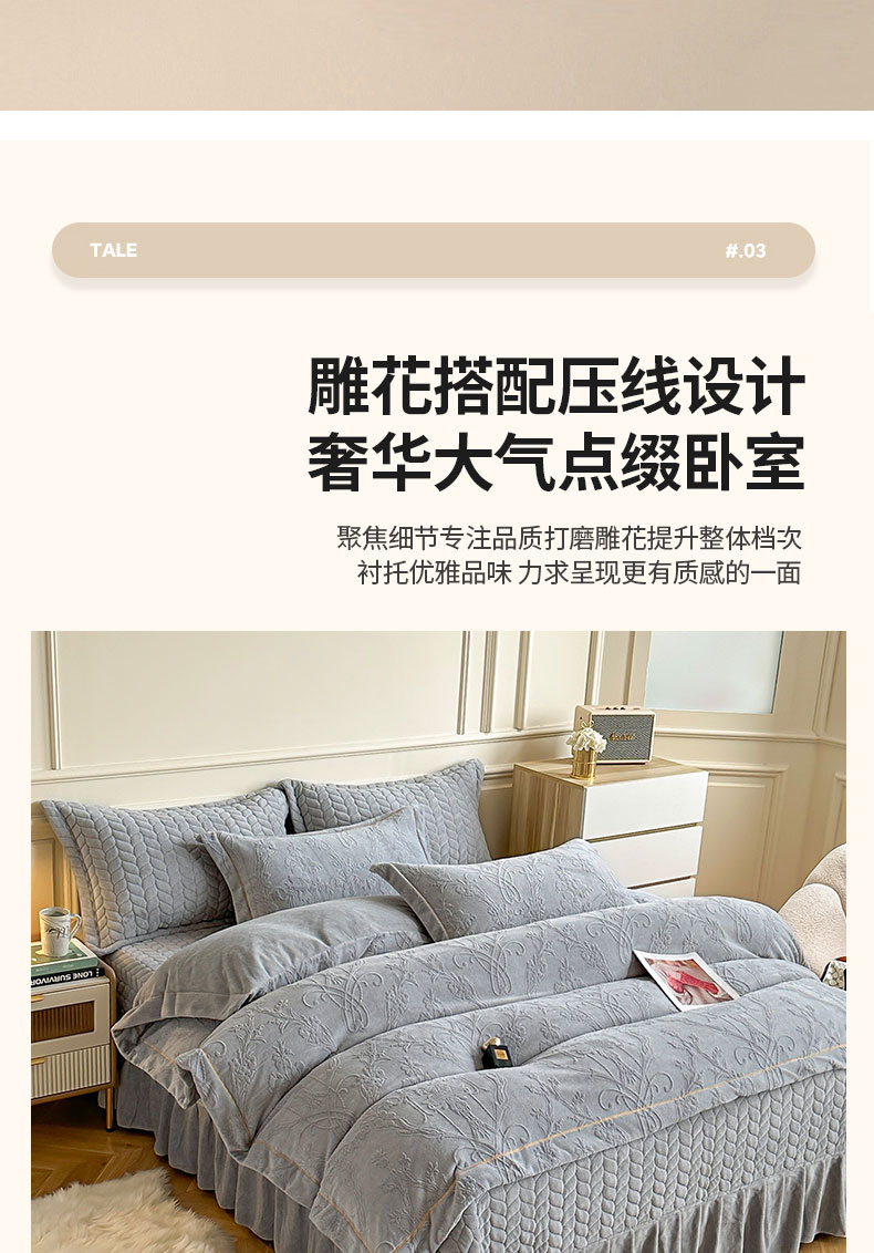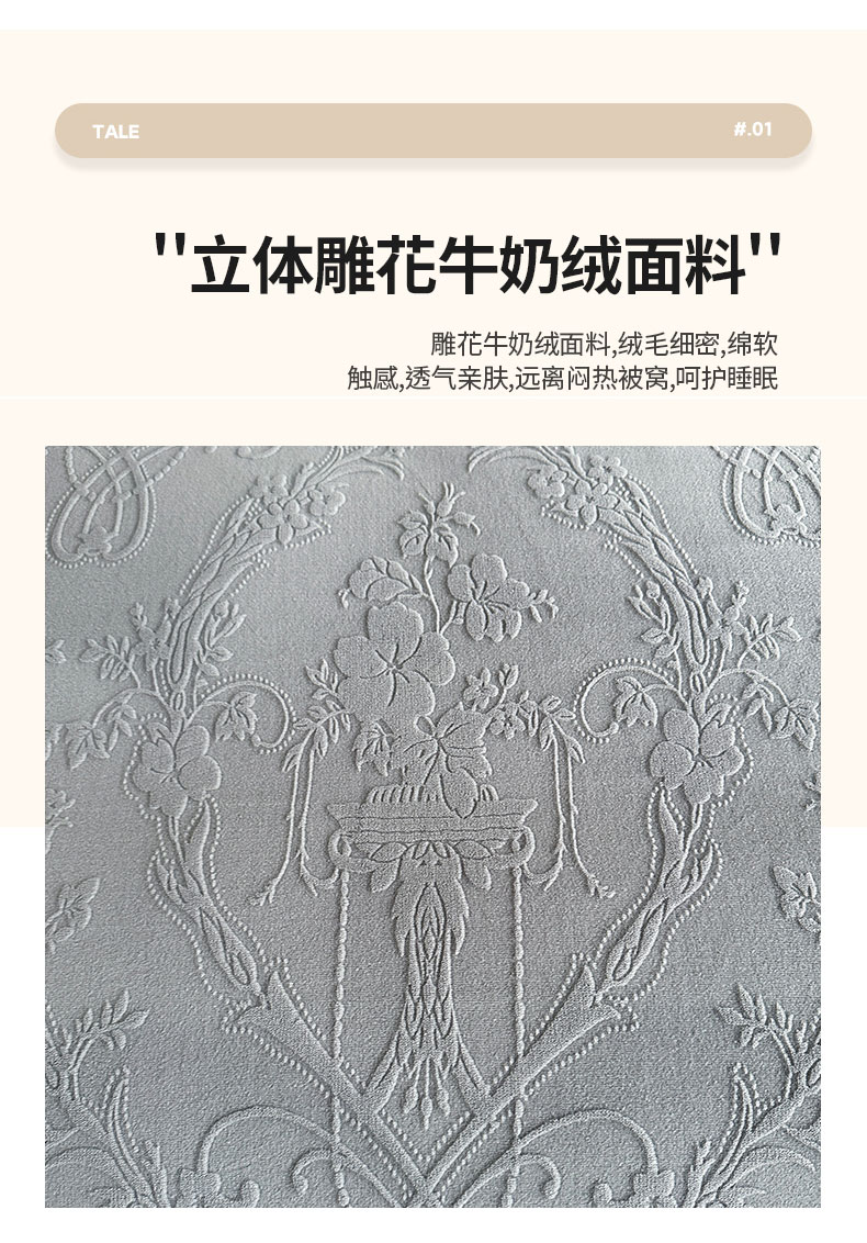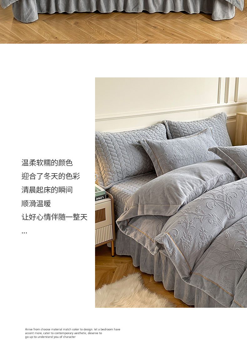 商品名称:金艾草 2023新款牛奶绒立体雕花夹棉床盖四件套 雕花绒-深灰
