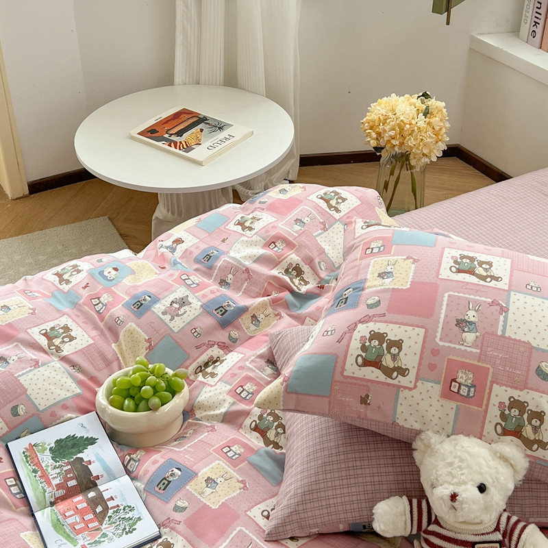 (总)时年家纺 2025新款全棉磨毛大版卡通印花系列套件,趣味熊,爱心熊,安静小象,波点兔,可爱熊宝,萌宝,奶油玩偶,小奥汀,慵懒猫咪