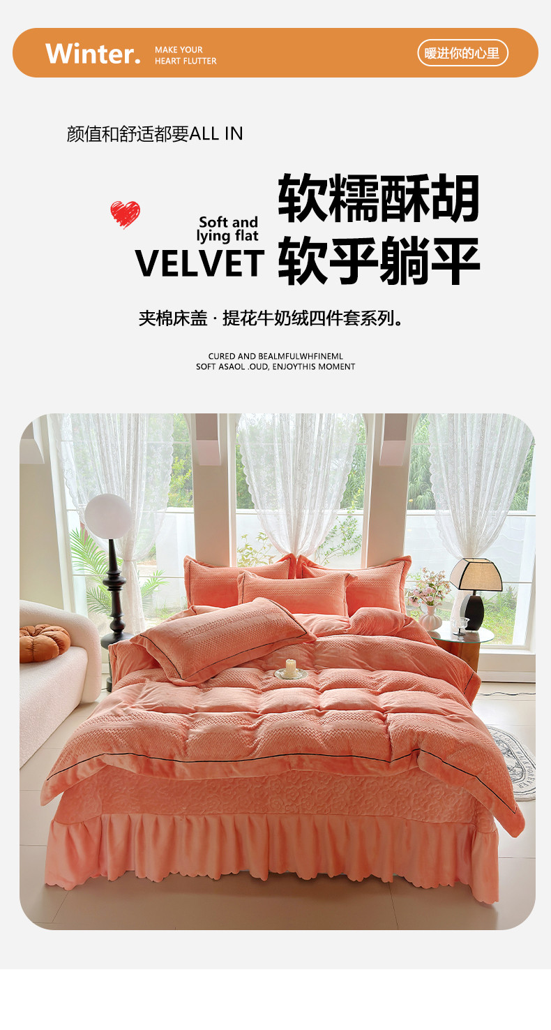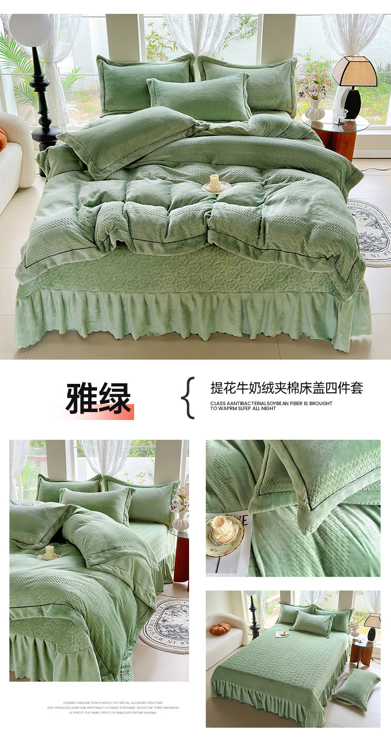 (总)舒梦琪 2024新款提花牛奶绒夹棉床盖四件套