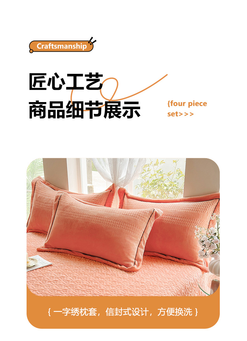 (总)舒梦琪家纺 2024新款加厚牛奶绒夹棉绣床盖四件套12斤左右,粉色,灰色,蓝色,绿色,奶白,紫色