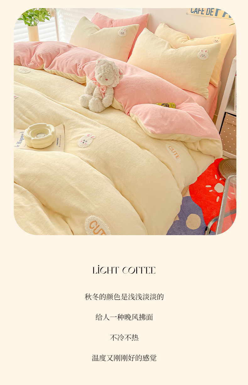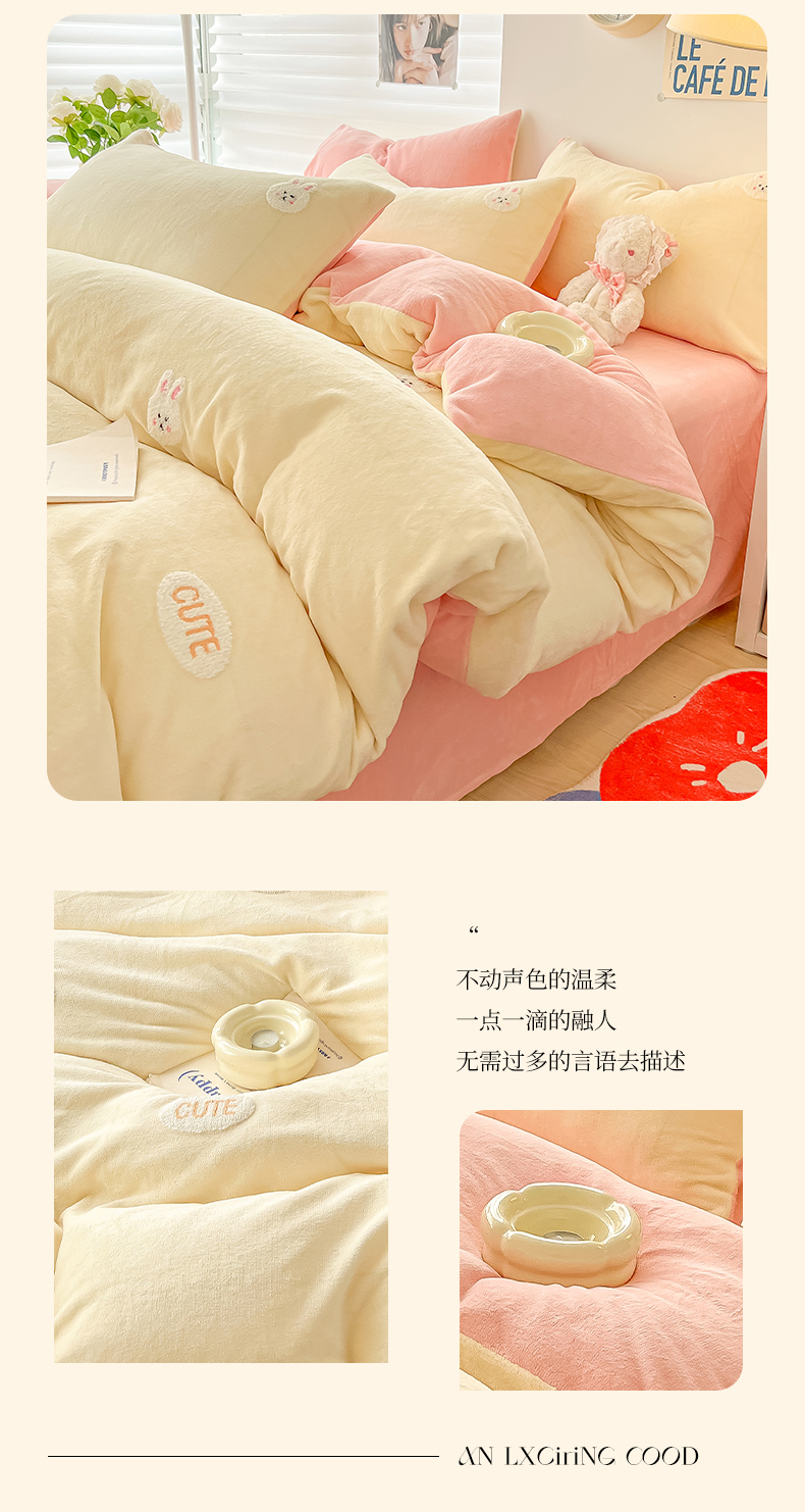 当前位置: 91家纺网 > 商品网购 > 床品套件 > 四件套 > 毛巾绣四件套 > 韩都 2023新款冬季加厚牛奶绒毛巾绣四件套 加厚牛奶绒-小兔子绒