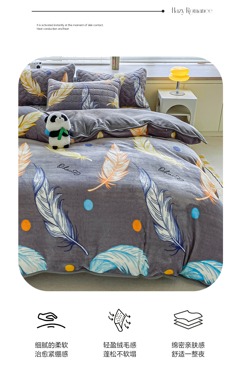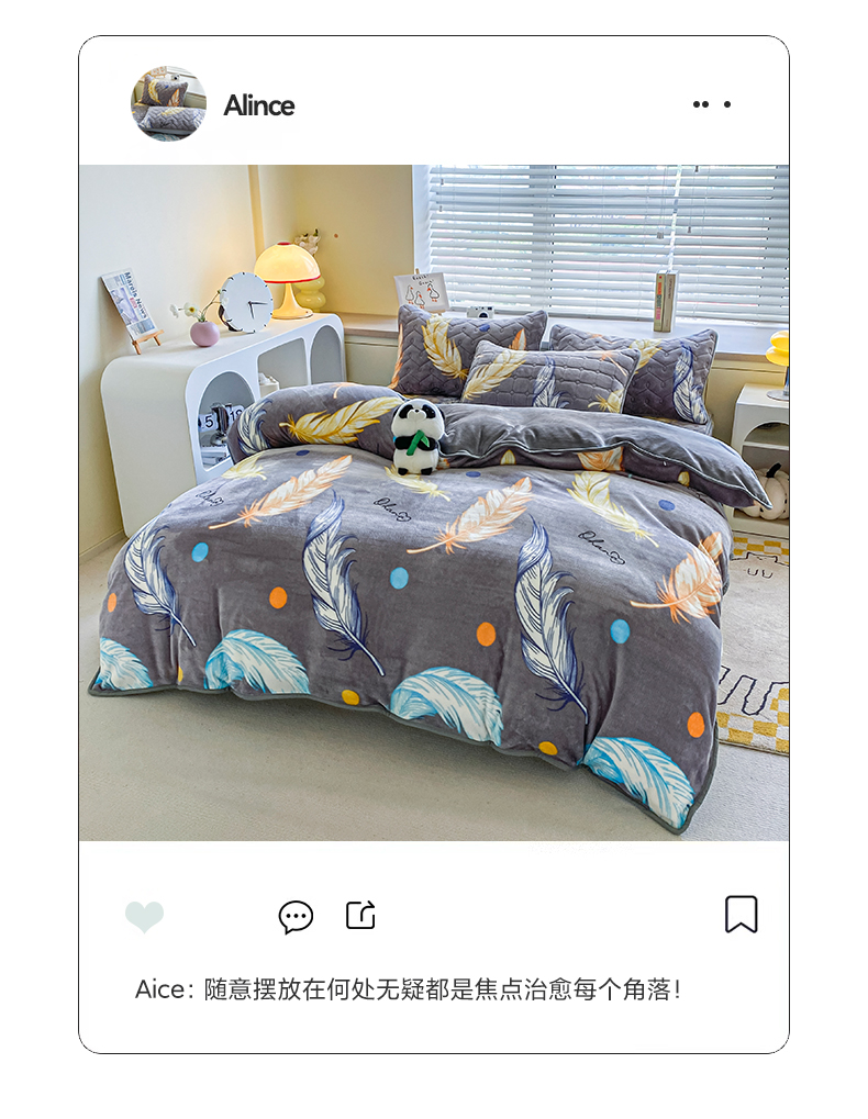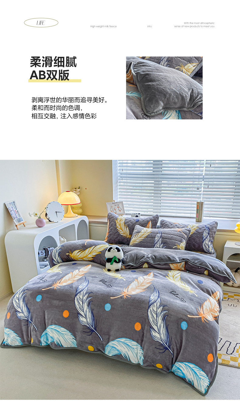 卡伦家纺 2025新款A类牛奶绒印花被套 轻羽飞扬