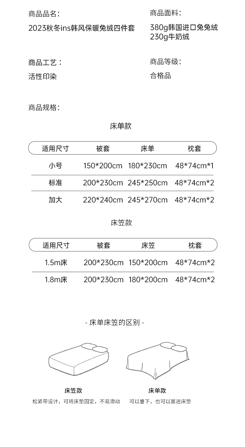 商品名称:潘朵拉 2023新款秋冬ins韩风专版印花保暖兔兔毛绒四件套 松岛